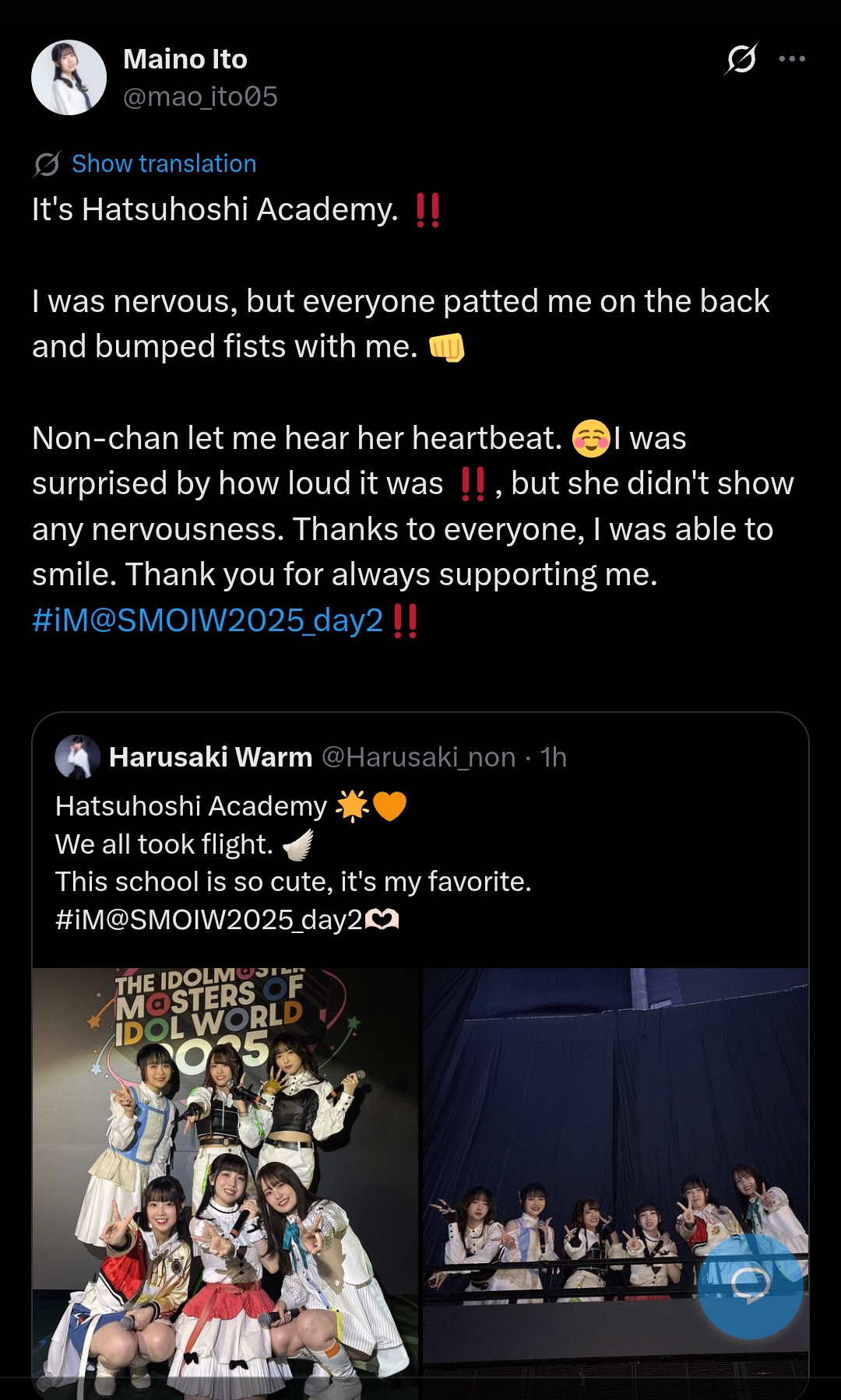 - Miki's VA's M@STERS OF IDOL WORLD 2025 report: >>550208774