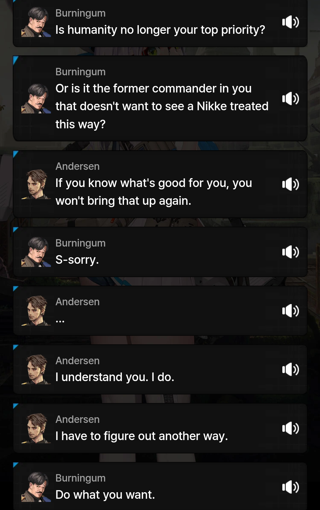 >>550292829I care about Anis and I am very excited to hear her story. I love Nikke.