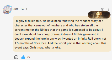 >>550285371those were a list of thr event i thought were great. I was complaining how nikke doesnt make kino events like those anymore.