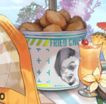 I've had Anus since she reran this Summer and she's spent a significant time on my home screen ever since and only now am I realising that on her table with the exotic fruits and drinks she also has a bucket of fried chicken with Mustang's face on it.