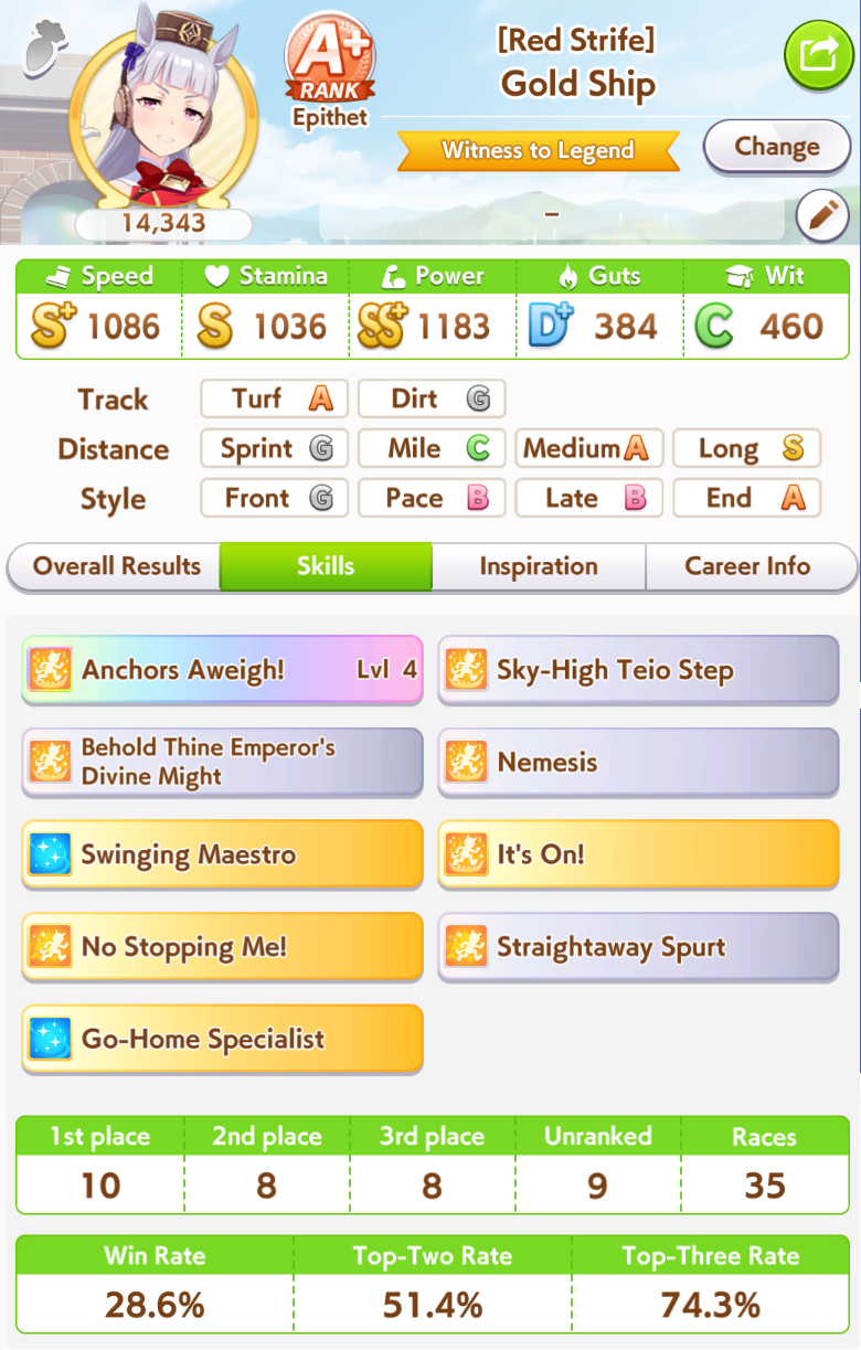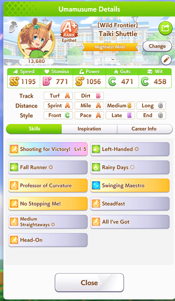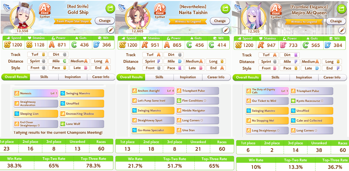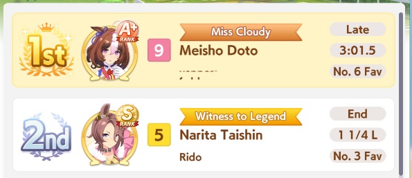 I run a throwaway big nige suzuka to make sure my taishin can proc sleeping lion + to punish anyone who dared to try running something that wasn't a late or end