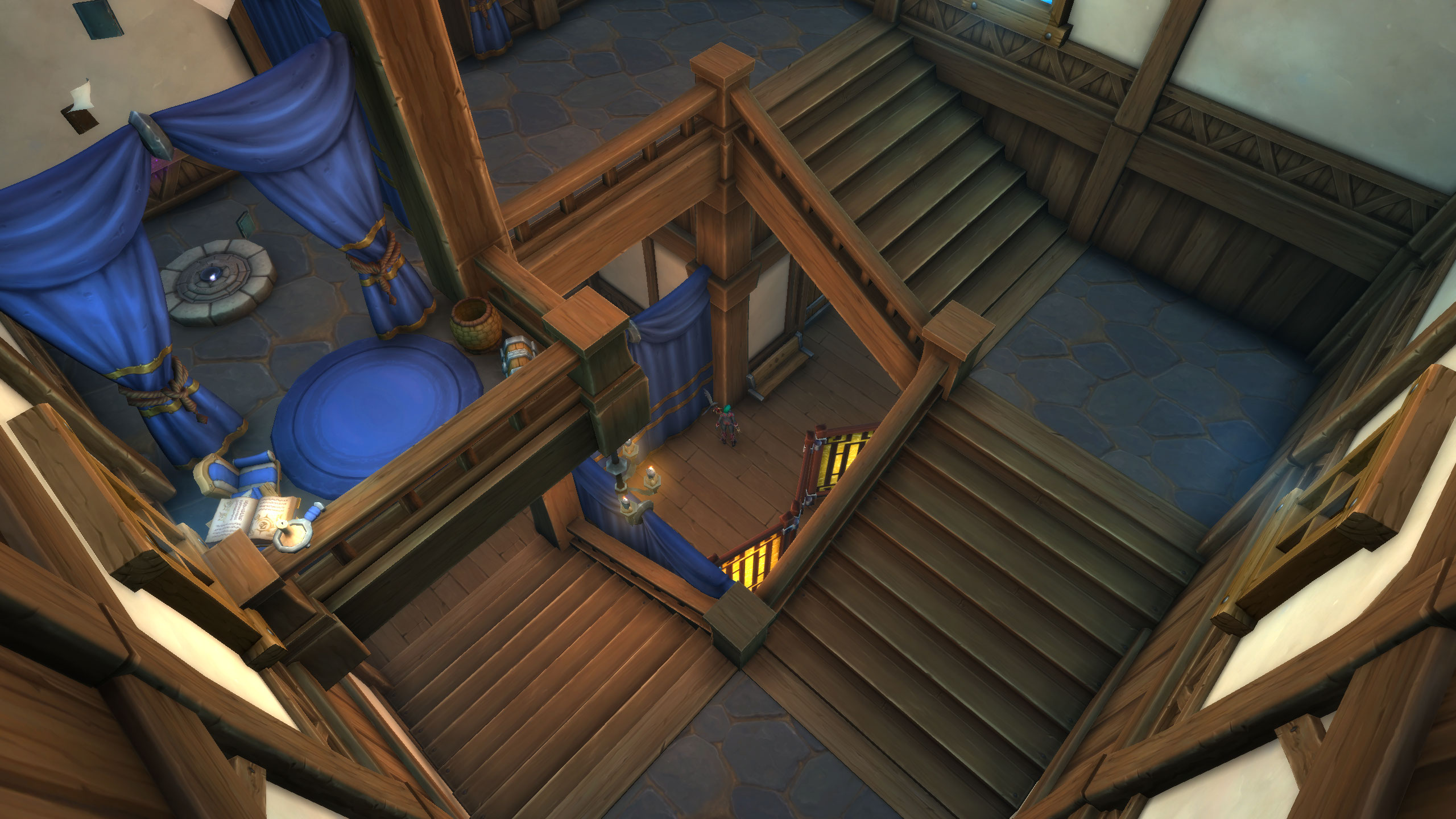 >>550257480While I agree theyre inefficient as stairwells and would really love a "tiny" foot print staircase, I see the room themselves and an opportunity to be creative. They cost 7, but they have a full lower floor and a partial upper floor with a raised landing between, all of which can be used.My lower floor is a bathhouse off the main common room with curtains and screens for privacy, the upper floor is an in in progress wizards study isolated from the louder common rooms. Haven't decided what to put on the landing.In my orc house my main, central chamber that leads to all the others is double height emtpy stair room with catwalks and balconies.