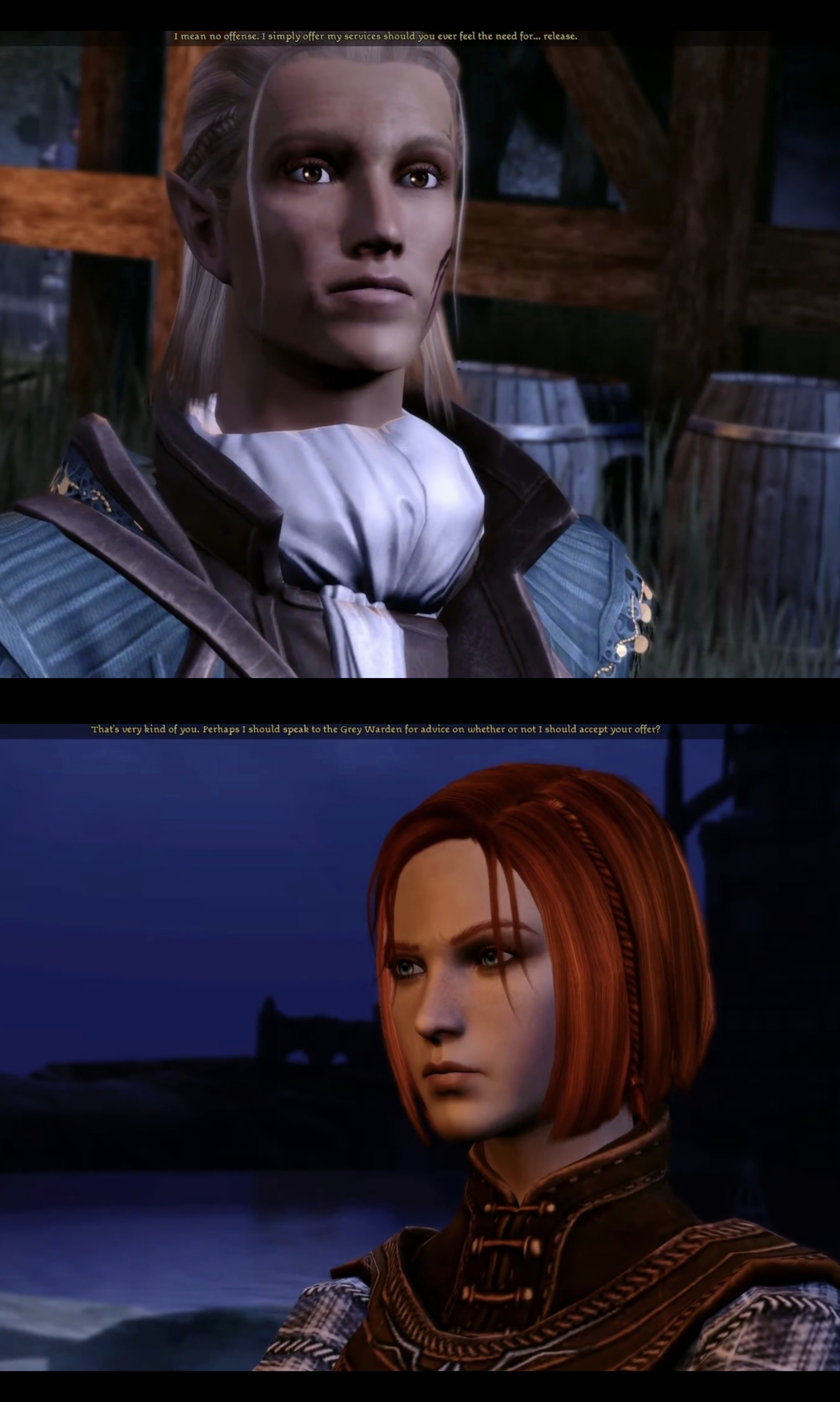 >>550280848Honestly that sounds like it would be interesting from a mechanical standpoint.>First game is the only one in the series where you actually create your own character fully>there are dozens of possible romance options, all of which are from different races/species>depending on who you romance in the first game, that is who your next character will be half of (romanced an elf, your character is an half-elf/romanced a Naga they'll be half snake)>import save data from first game like in Mass Effect, with your choices in the first game effecting the second>character customization is limited in second game because you can't pick your race or class option, but you can still pick male or female and how they look>your class and background is determined by a prologue chapter where the character you created in the first game and their romance option raises the character you are playing now>depending on what choices your first character made in the first game and who they romanced, you can have vastly different childhoods that give you different buffs, traits or classes or even debuffs