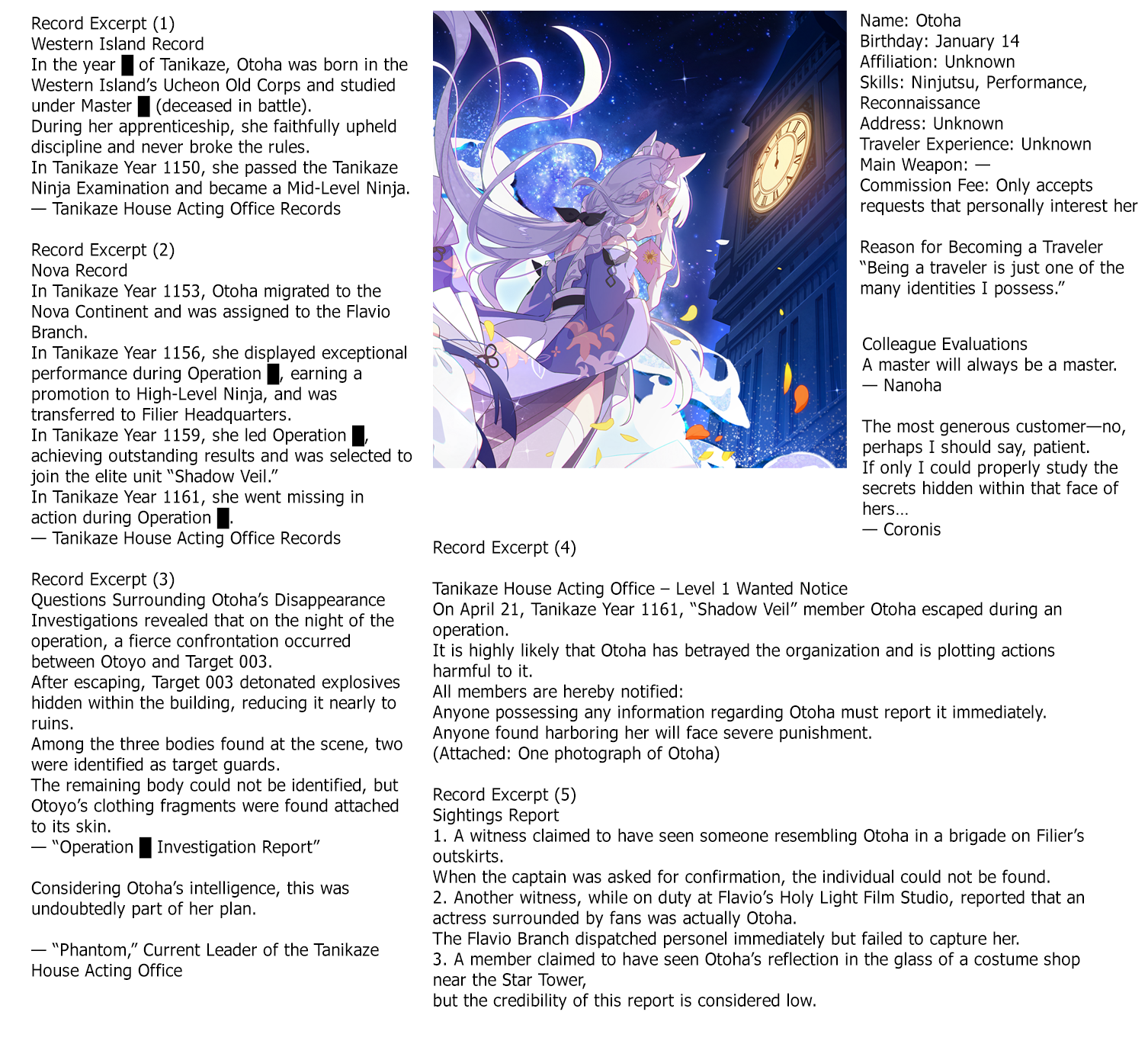 >>550279593OFFICIAL /sora/ character name listPlease do not use names that are not on this list, they are fake localizationsKohakuAyameSeinaGreyCanacheReisenAnzuCrunisMinervaMistyNatsukaAuroraFiren