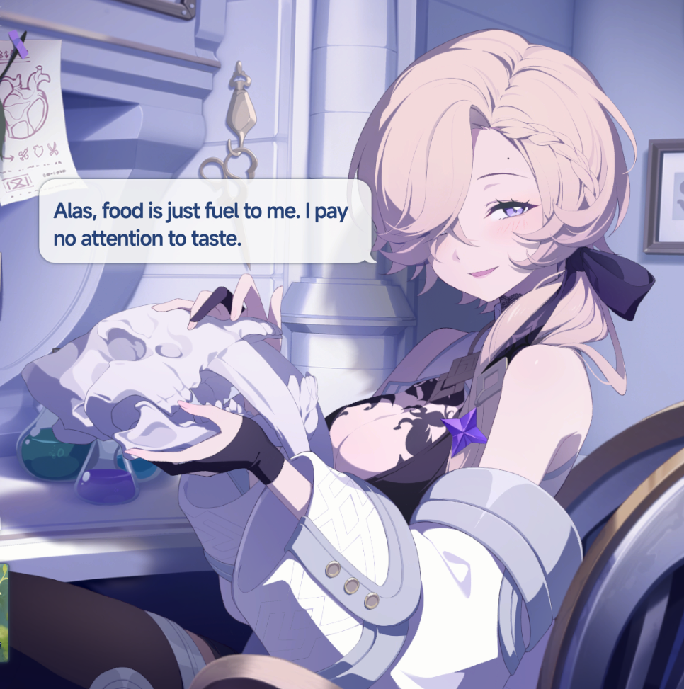 >>550289342I feel like UH is a some kind of retaliation against a shitty someone or community. I'm not too high on Ridge's bond level but Ridge lived from a famine on her childhood and hates food thieves the most