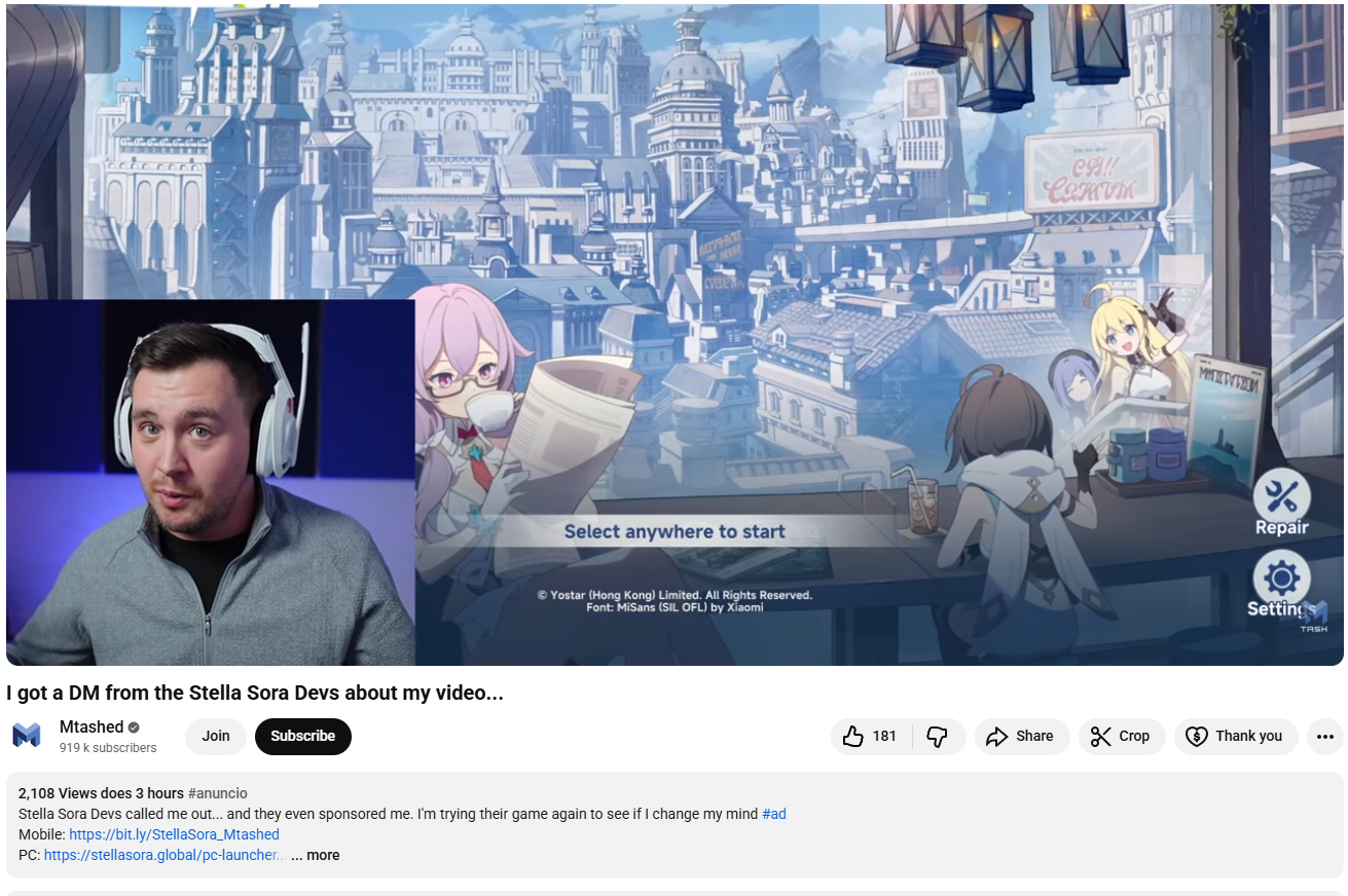Previous Commission: >>550112572Upcoming Livestream: https://www.youtube.com/live/V-mdcLxsLEA>Game Website & Downloadhttps://stellasora.global/ >JP Clienthttps://stellasora.jp/ >Current Content[12/08] Main Story Chapter 4 Release[12/08-12/22] Main Story Event - Beyond the Dream[12/08-12/22] Cataclysm Survivor - Catastrophe (Element: Ventus+Ignis+Lux)[12/08-12/29] Limited Recruit - (Ventus) 5* Nazuka + (Ventus) 4* Ann and (Ignis) 4* Kasimira[12/08-12/29] Disc Pickup - (Ventus) 5* "Deer's Song"[12/01-12/22] Limited Recruit - (Terra) 5* Gerie + (Ignis) 4* Flora and (Ventus) 4* Canace[12/01-12/22] Disc Pickup - (Terra) 5* "The Lost Pilgrim"[11/30-12/30] Boss Blitz - Ventus+Lux and Ignis+Aqua[11/30-12/30] BP Skin - Tilia >Upcoming ContentTBA >Databasehttps://stella.ennead.cc/ >Resources and useful linkshttps://rentry.org/StellaSoraResourceshttps://rentry.org/StellaTierListshttps://rentry.org/StellaSoraBuildshttps://rentry.org/StellaSoraAscensionGuide >CodesBOSSGIFT