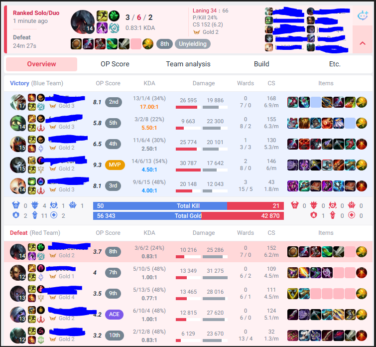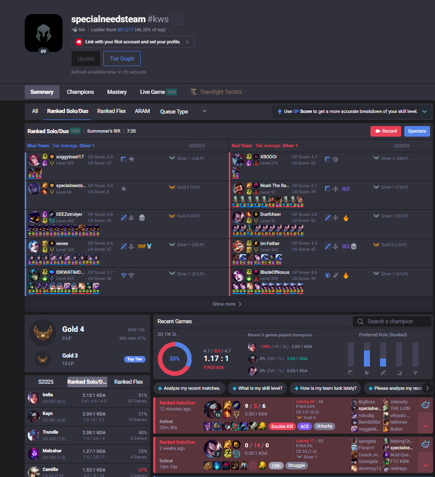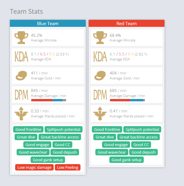 UHHHHH POROFESSOR?HOW COME OUR >48% WINRATETeam hard stomped this game when you tell us that the enemy team wins 70% of the time on average? How come they were gapped in EVERY ROLE and lost top WITH COUNTERPICK?How come the autofilled support CANCERGAPPED the sup main? How come the "vulnerable" adc literally farmed the enemy team on repeat, including the enemy diana and rengar who should by all accounts oneshot them?How can you say that the team that on average has a better kda, earns more gold, and has the far better comp will lose?>uh but you had two autofills>uh but you had x winrate over the last couple of daysAnd yet every stat on said team was still higher despite these "facts"This is a garbage website that tells you nothing and only wants to demoralise you, dont use it Give me a challenge and I will go 7/0/12 and be the mvp