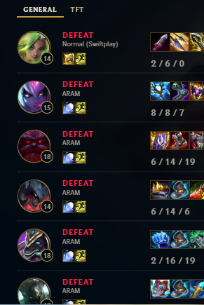 >>550359697>27>garen currentlyI used to believe that a good player should be able to play at least 2-3 champs per role to be able to climb, so I feel personally offended when I see monkeys 1tp shit champs like yasuo, yone or kayne and get freelo from it while being arguably bad at the game. society et.c.>14-15 years on and off