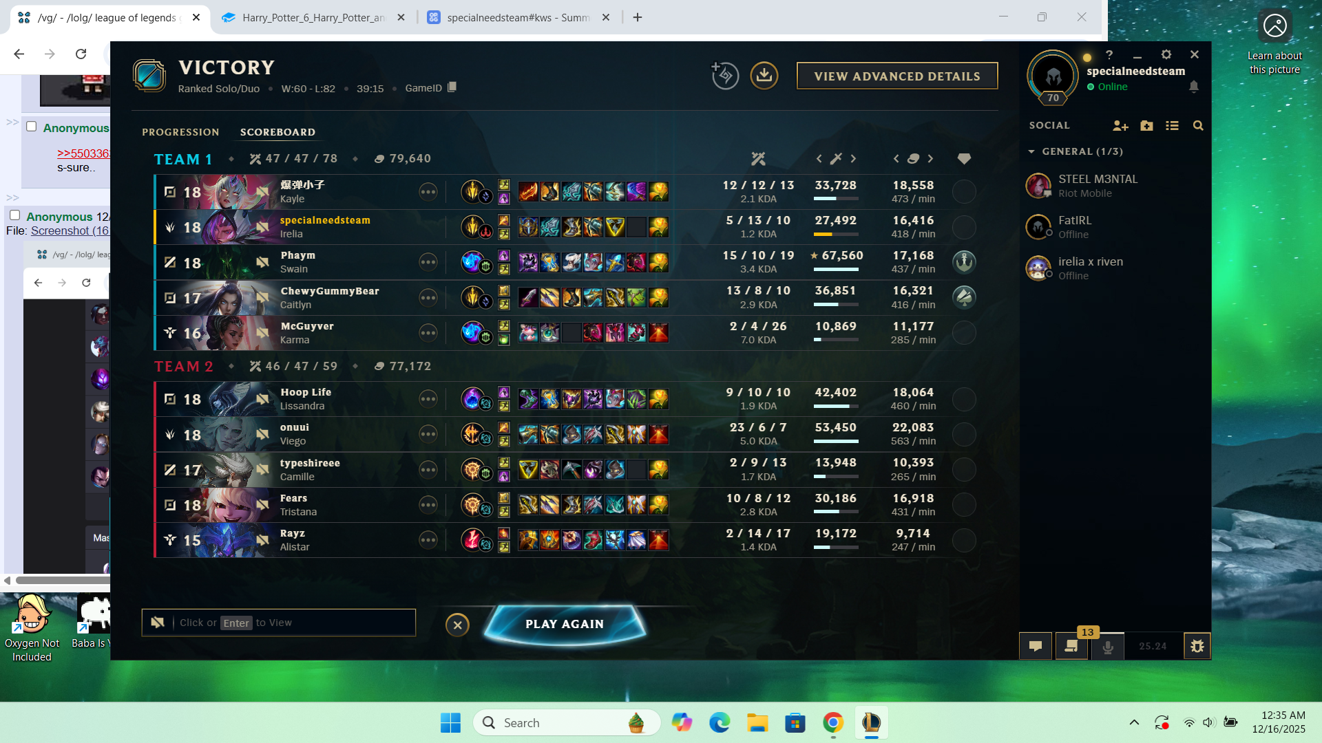 >>55035969727Poppy, Briar, Annie, TristanaDec 2023I started playing with friends, and they all quit by this point.I still don't know why I still play this shuitI hate this gameI hate Riot