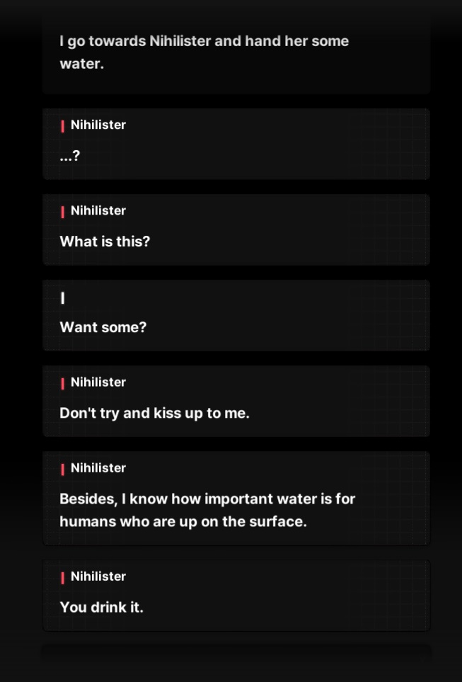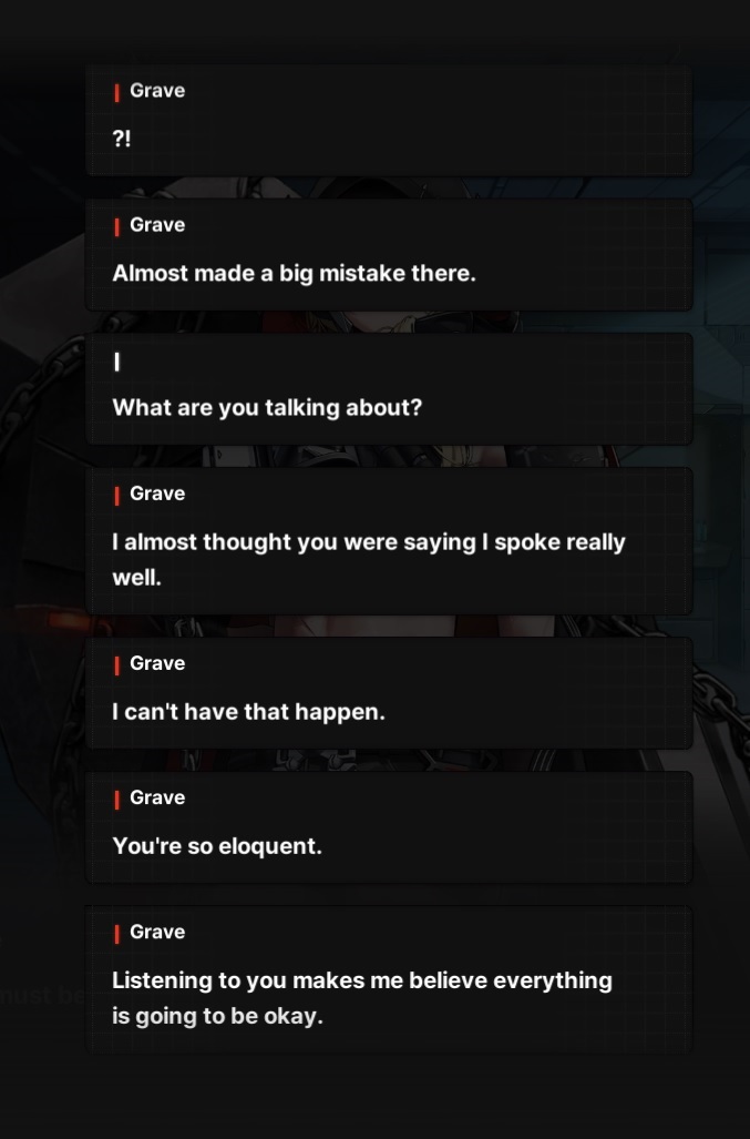 >>550296780Hag perma talking about her ex-lover. Nikkes are an afterthought. Nonsensical at some points. It's not a good read/experience.