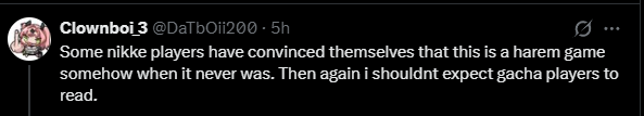 >haremcels are crying about the devnotesLmfao low IQ chuds really thought thls was a "le hecking based gooner game" when the game is literally about feminism and uplifting women.Go play snowbreak you arent the target audience