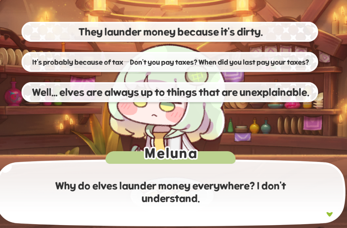 >Elena has rounded up a bunch of homeless elves>she asks if you want themThese banquet hall lines, man... Some hero Elena is.