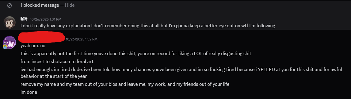 >>550340292i realize theres no point in censoring my discord but whatever im too tired to care. heres the last message i sent her bum ass. should be obvious who i am