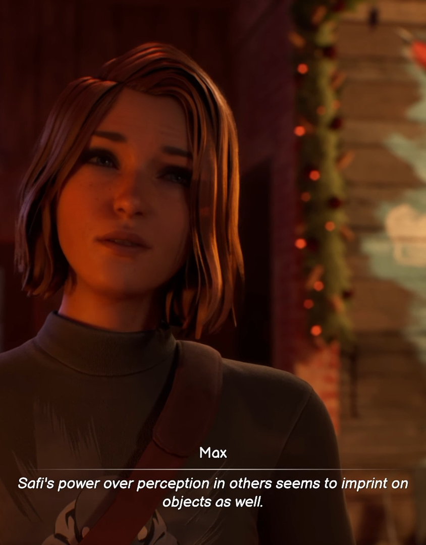 >>550390016>>550390787Also remember, Max literally tells you, the player, that Safi's powers affect objects as well.