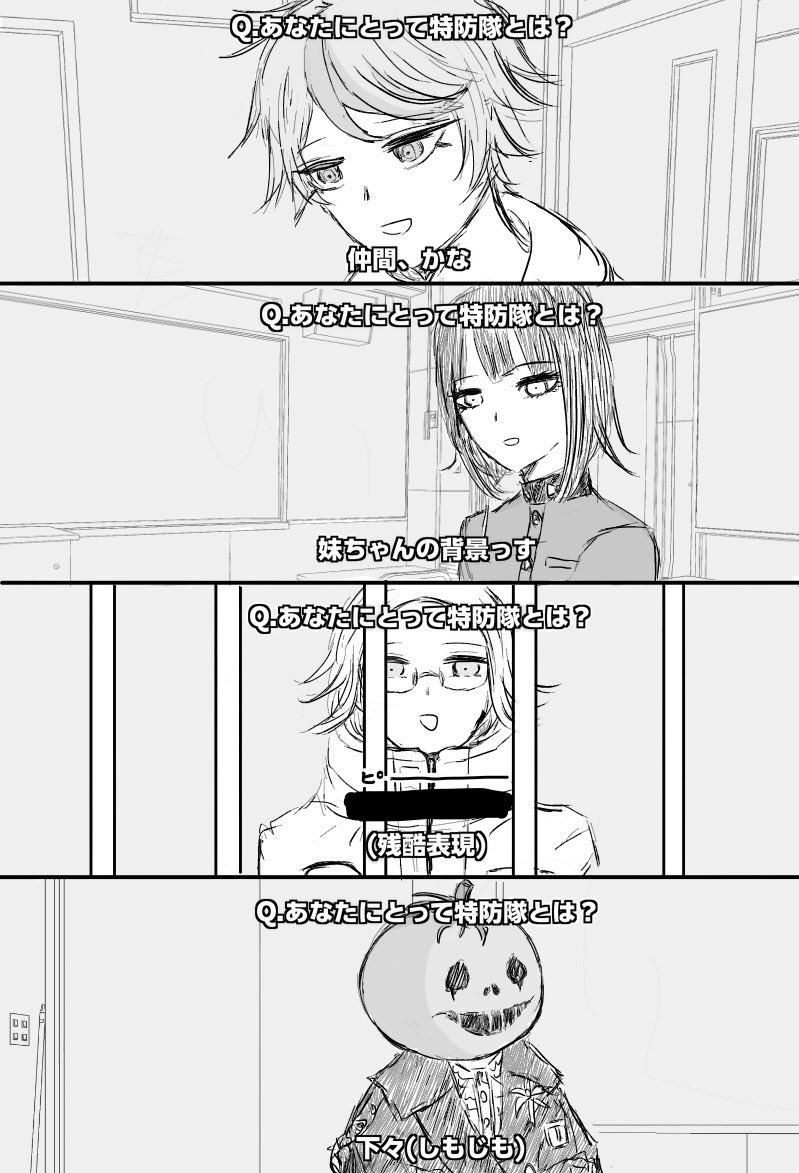 Q. What is the Special Defense Force to you?>Comrades, I guess.>It's my imouto-chan's background scenery.>(Graphic description blacked out)>The common rabble.