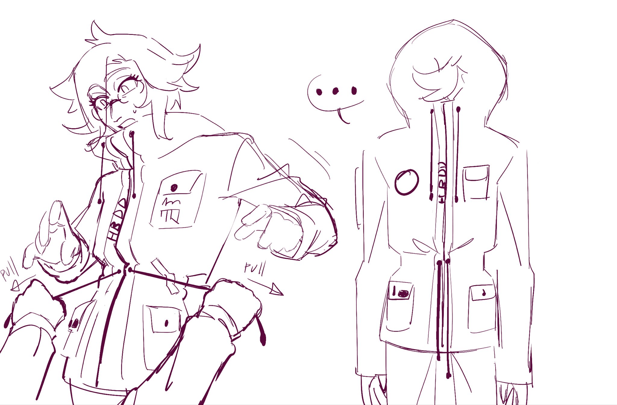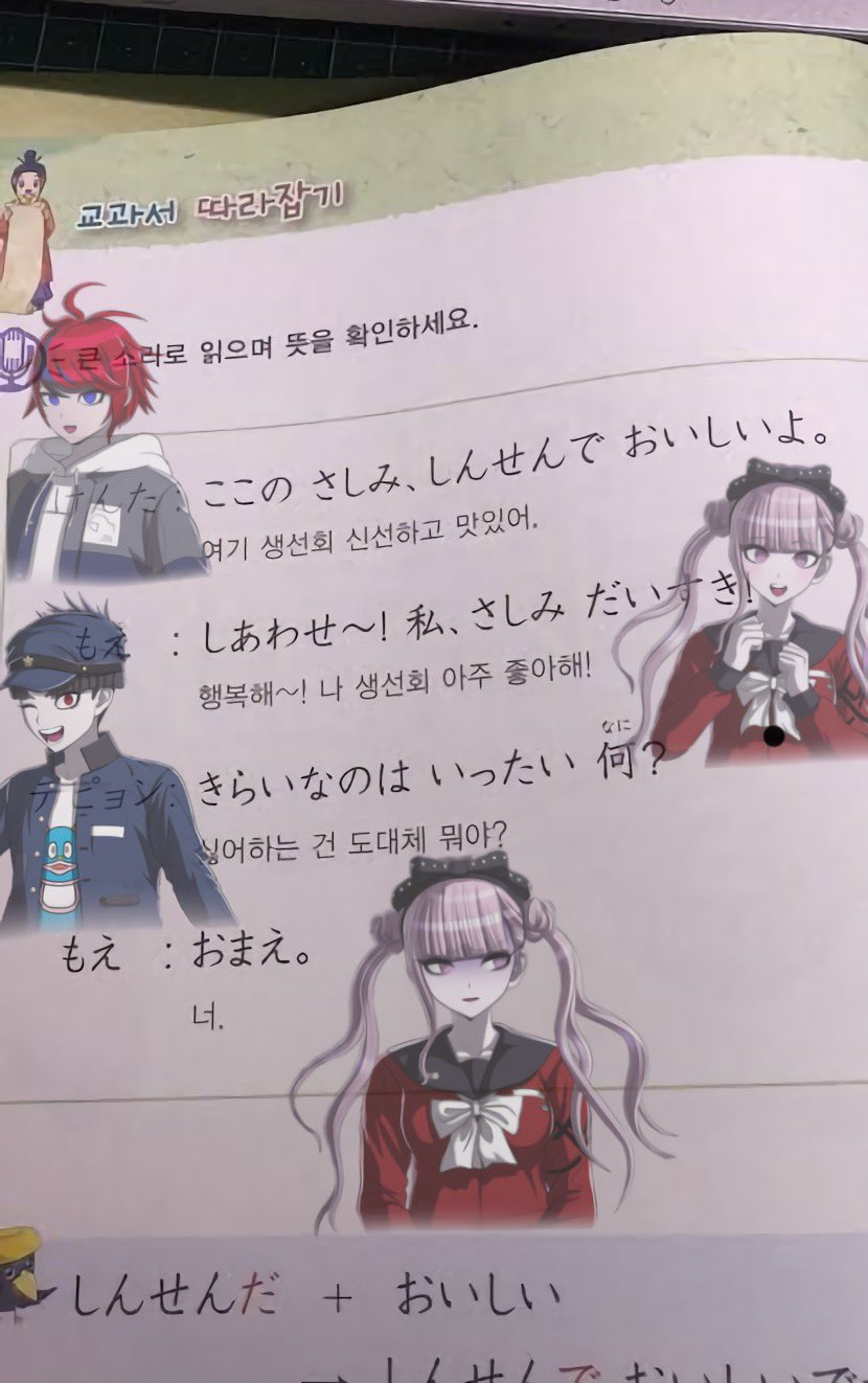 >>550701562>finally a girl who doesn't wear skirtAsahina>GakuDon't like his design, his hair is stupid, his clothes are too eclictic. I got that it shows his poverty but it still looks too stupid for my taste>EitoThe worst design in the game, his clothes are stupid, his hairs are stupid, I unironically wanted to punch him even before reveal>Yugamu>KyoshikaThese two are actually nice, I agree.Nozomi would be better without jacket, it makes her fatter than she actually is, but I love her hair style, it looks very fluffy and makes her look motherly. Also like reverse clothes colors with Karua, it's neat.Eva is clearly inspired by hentai games and she is quite bland but her "emotion poses" are on better side among all characters, love them.Kako and Ima are just mid-schoolers but red. Simple as.Same with Takemaru, his distinguishing feature is jacket on top, but it look stupid