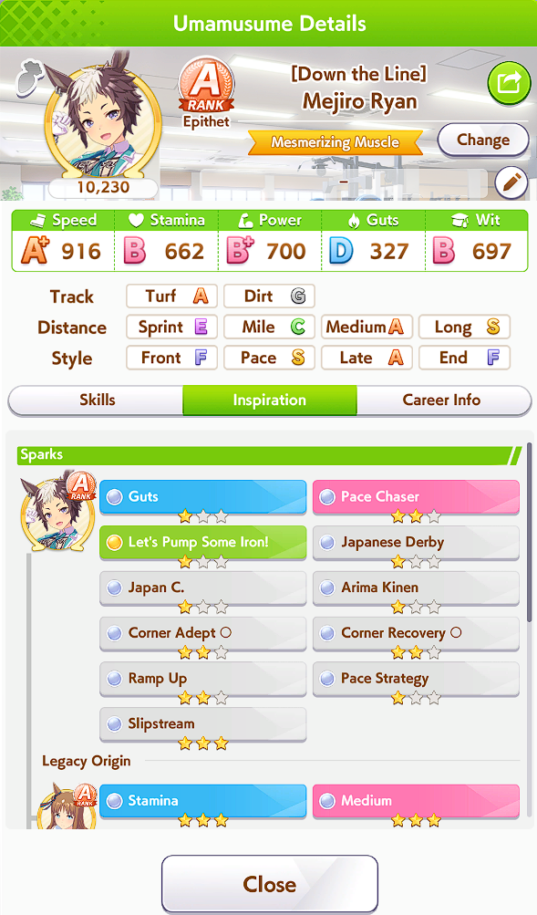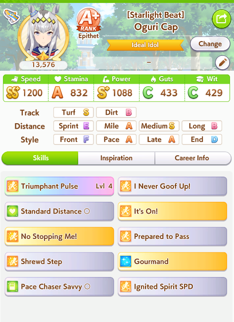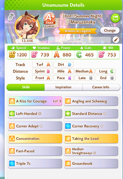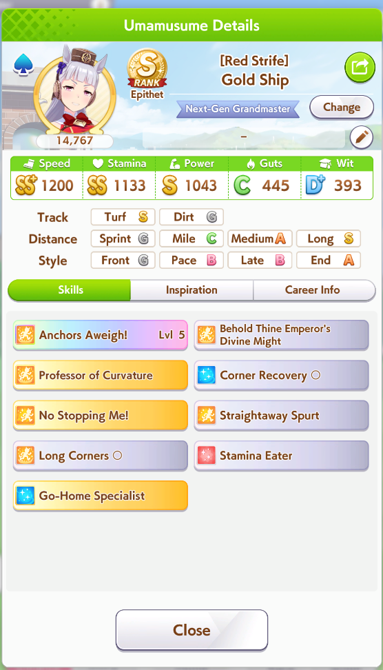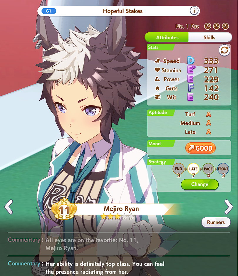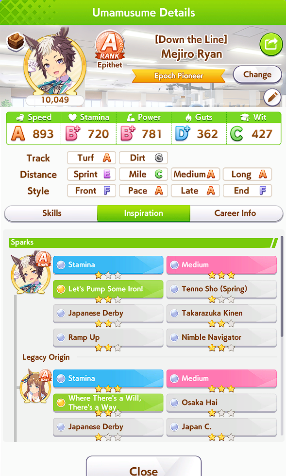 >>550387953It feels like on this track Suzuka pushes the pack way further apart than in mile. It means paces and especially lates are way too behind unless they have a lot of mid race skills. This usually leads them not being close enough to fronts to get NSM/passing skills off.I think I need to try out some rooms without Suzuka to see what happens. Runaway does so many weird things to how umas behave.