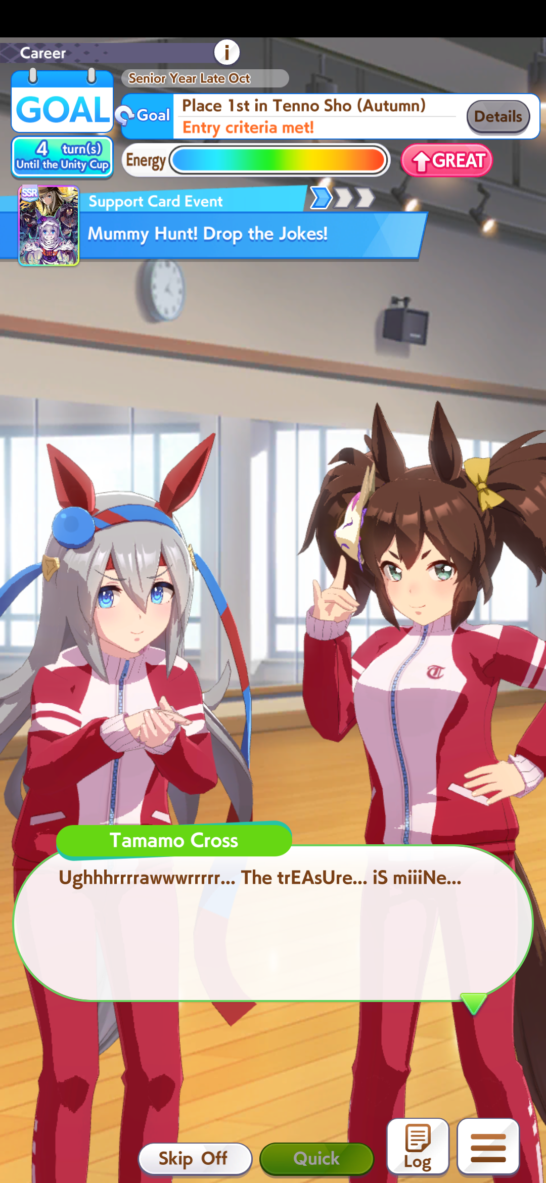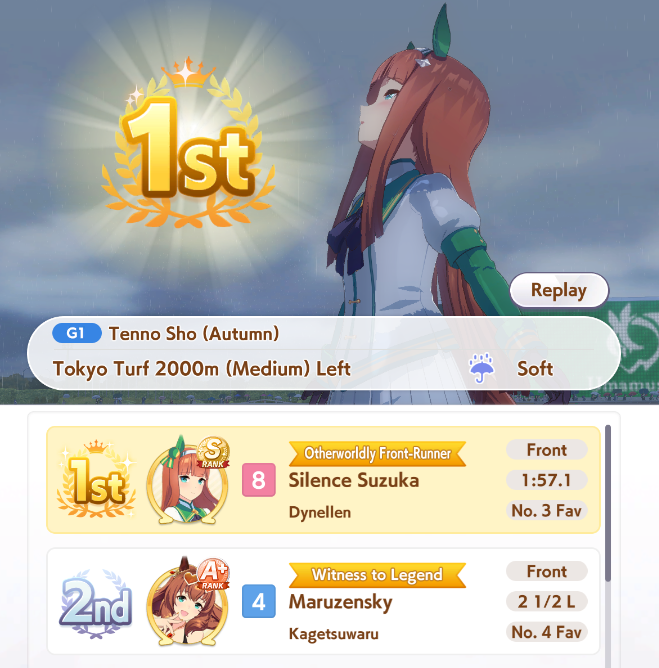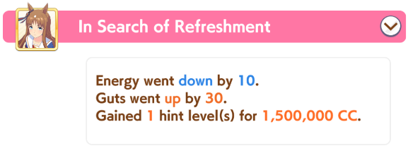 >>550365656i tested it in umalator, i'll survive vs double murmurs and i highly doubt those lobbies will even exist after round 1.>>550365664suzuka event, i was playing around with sparks and i feel like while the power sparks is nice, i might go back to stam like that anon said