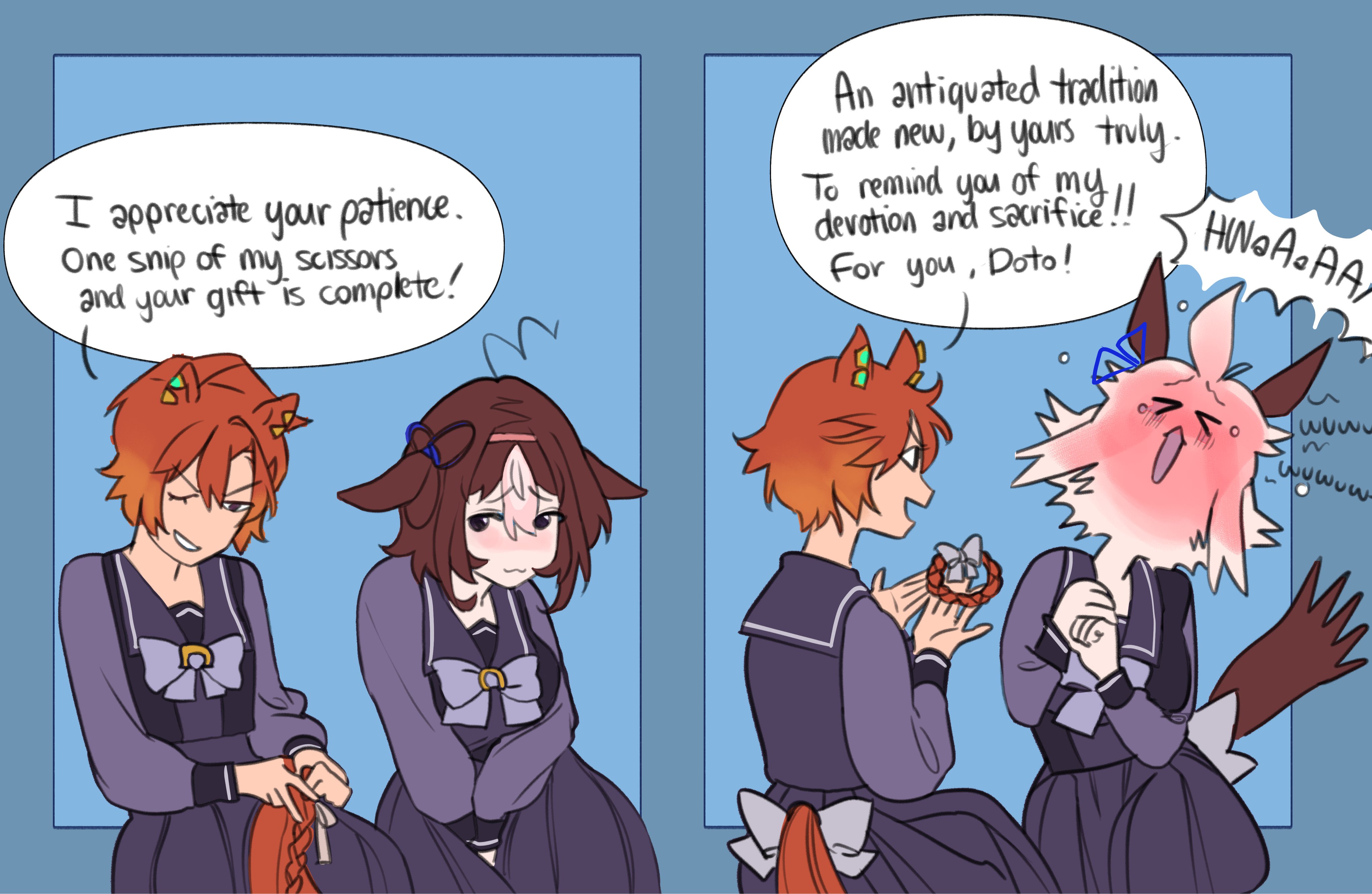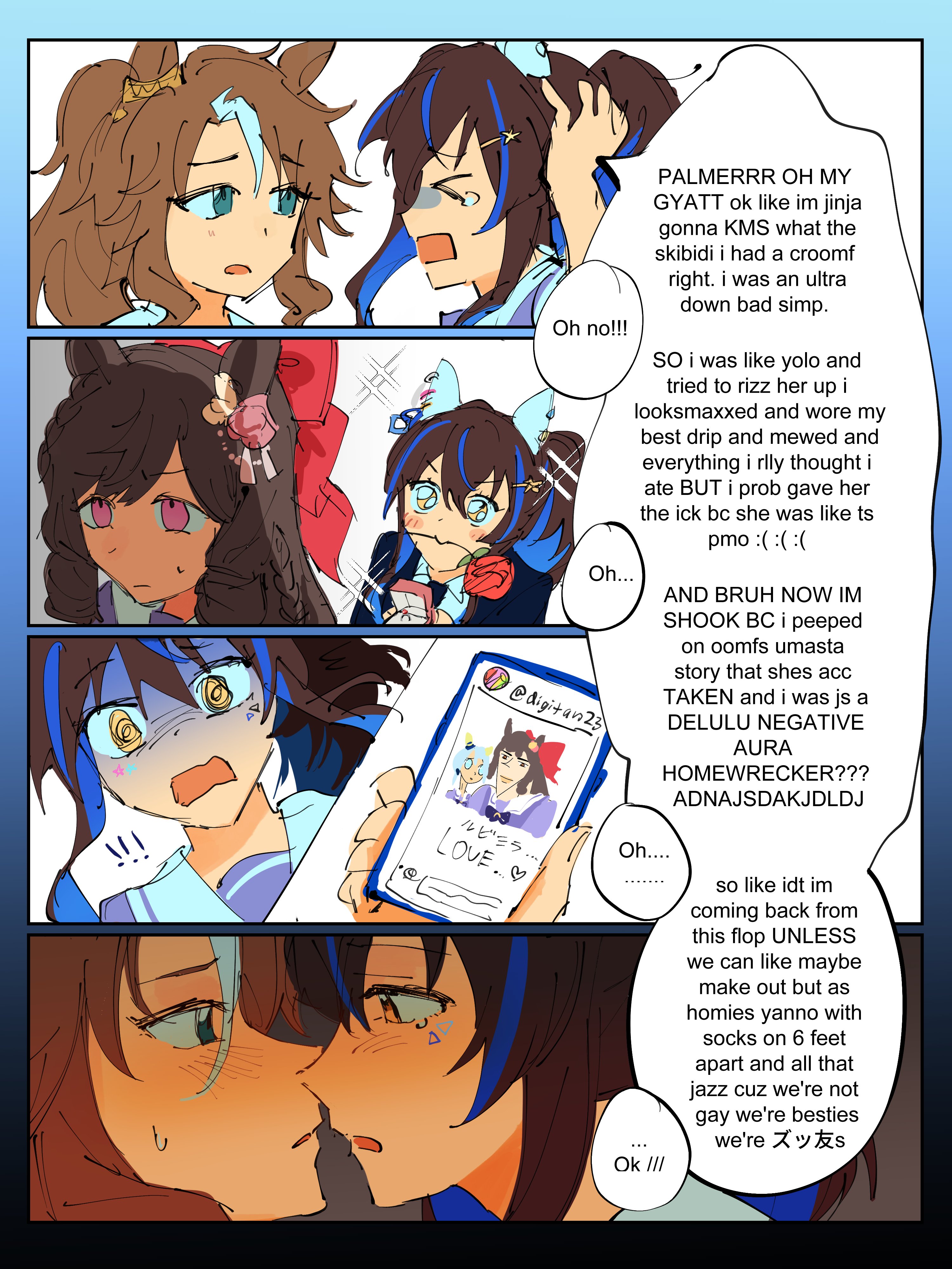 It is our duty as adults AND trainers to tell young and impressionable umas that we are not there to marry them, we are strictly there to guide them to success. It might be tempting for them, but that's because they're still growing and hormonal. We have a duty to maintain that boundary and set an example by only dating Ningen women