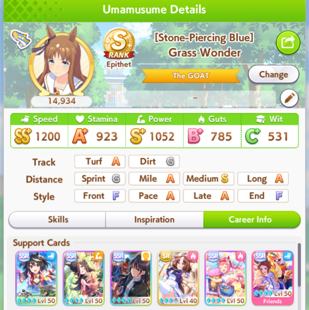 Grass Wonder is actually goated, not only as an ace but parenther Fantasy version really helped me making aces because of her ult inherit which is halfway between a white and gold