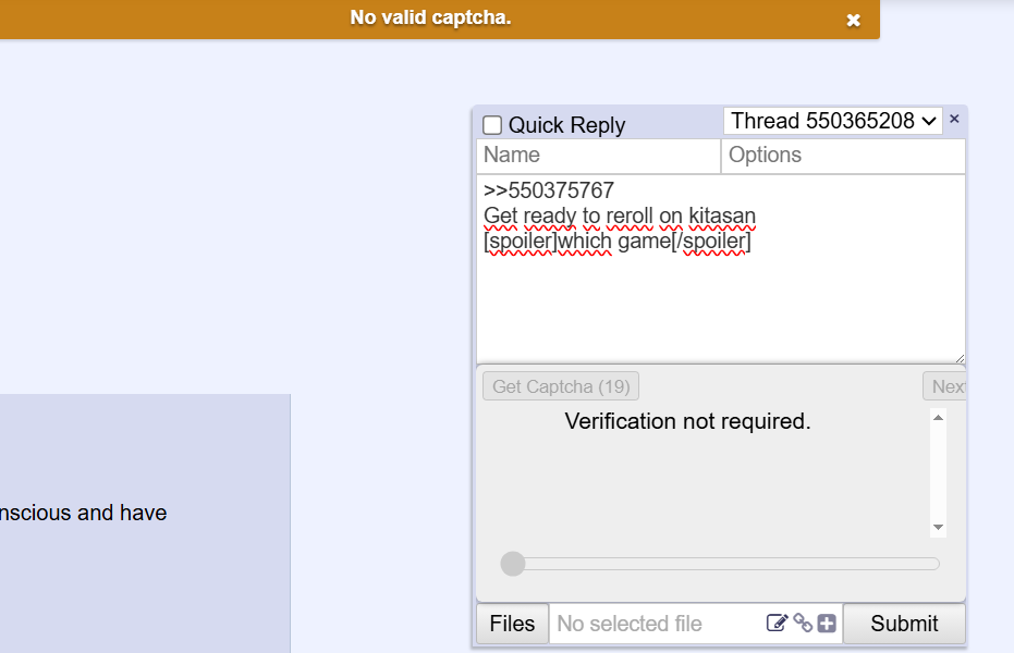 >>550368605>keeps saying I’m wrong>literally don’t know what I’m doing wrong >give up>refresh page >it postedBruh