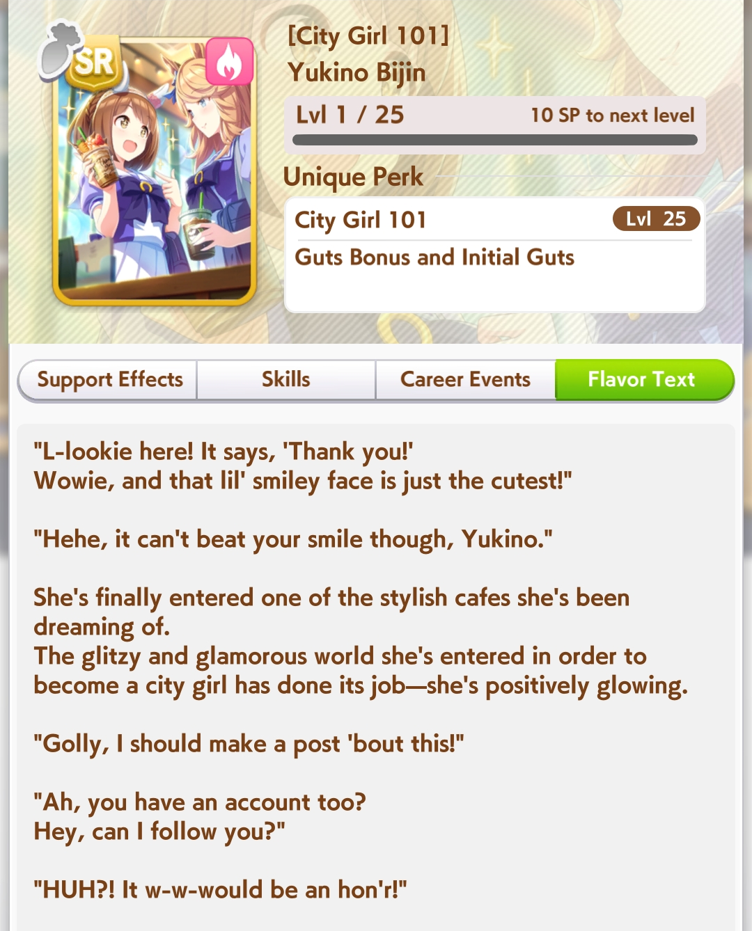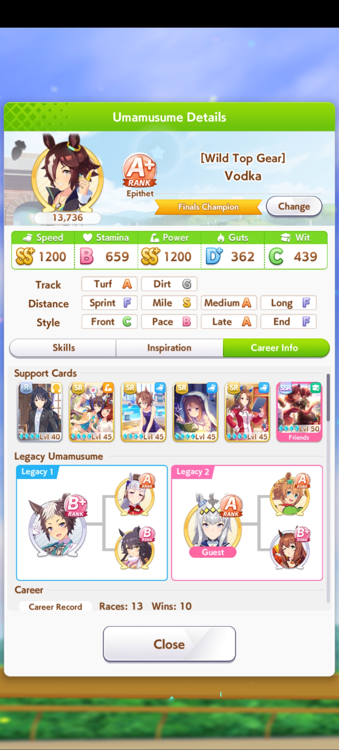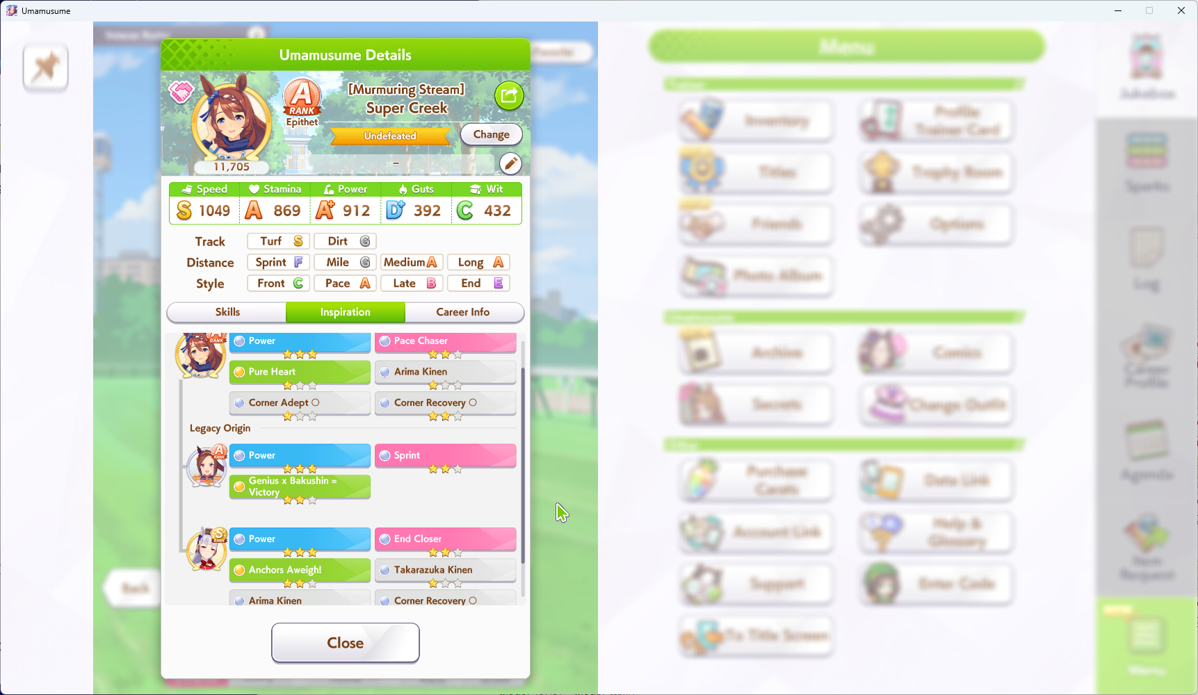 >>550457820eh, all OG rice has going for her is innate highlander. OG vs vamp in pace promote i'd still take vamp for calm and collected's reliable activation over cooldown's irregular activation, plus vamp's better growth bonuses>>550457940sorry buddy. S turf and 1015 power makes my rice pretty hard to overtake. I was trying to use groundwork daiwa for pace promote strats but she consistently couldn't secure the lead against my rice so I had to give up on the idea.