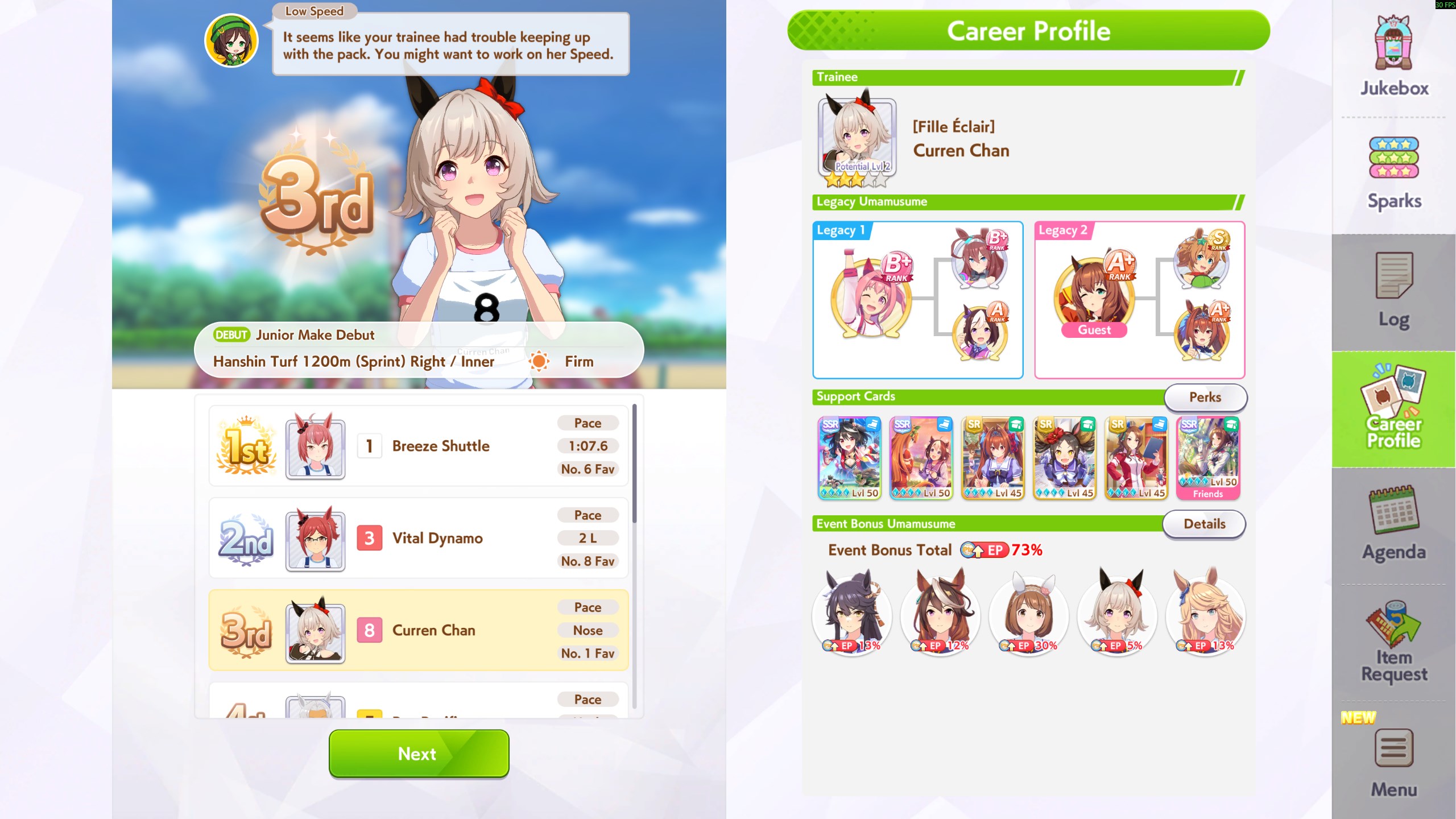 Danchou I'll be taking it easy until Kitasan rerun. I realized I haven't played other games at all ever since the nonstop CMs happened