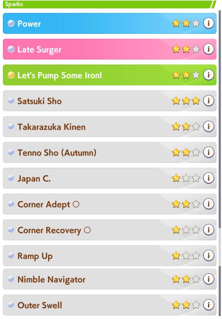 >>550471641you don't have to be an oinker for the build to work, you just need to have the ability to borrow Biko. I've found that this build works really well on 10% and 20% speed umas and lets me shit out S ranks super easy. you can substitute the rice shower for whatever the uma you're using needs