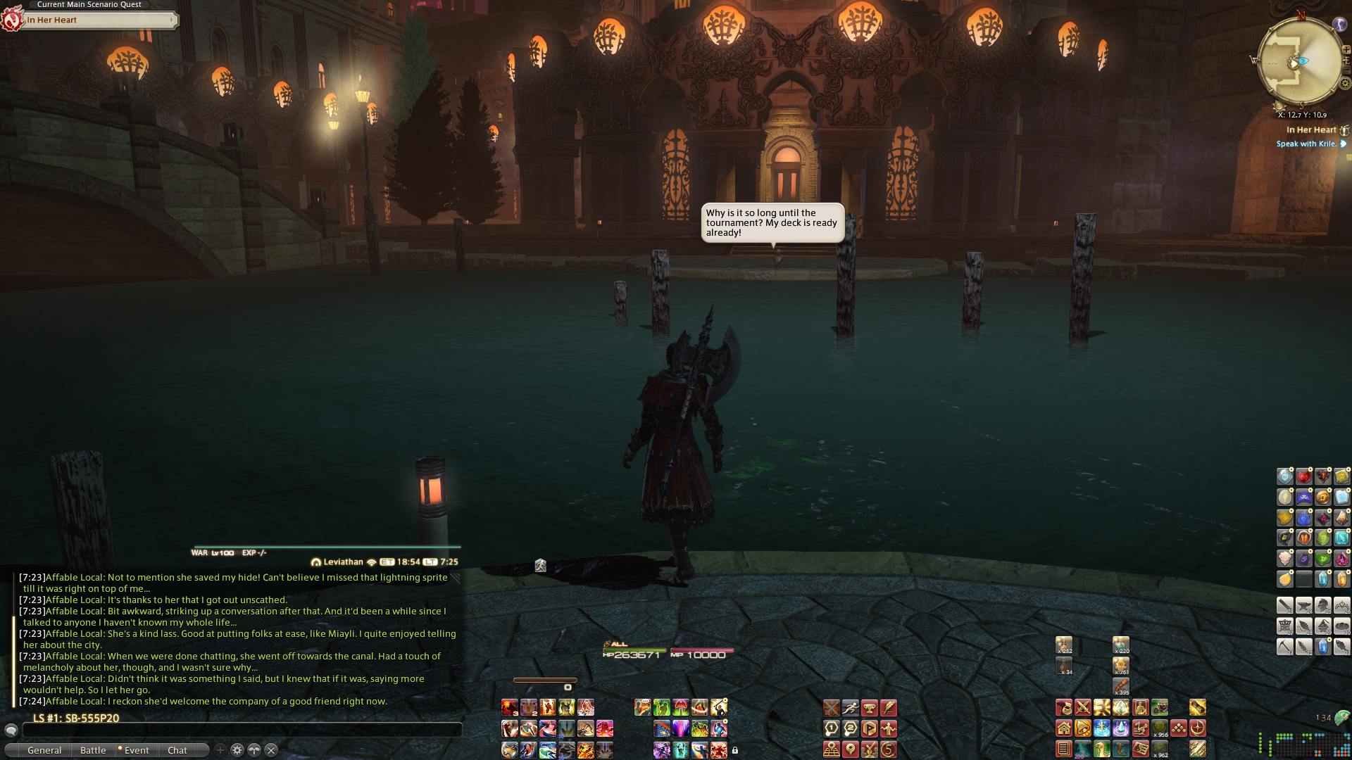 You are now in the instanced area Solution Nine .Current instance can be confirmed at any time using the /instance text command.Triple Triad matches allowed in current area.Triple Triad matches not allowed in current area.You have left the sanctuary.You have entered a sanctuary.You have left the sanctuary.You have entered a sanctuary.The Lavender Beds, Ward 28You obtain 20,000,000 gil.