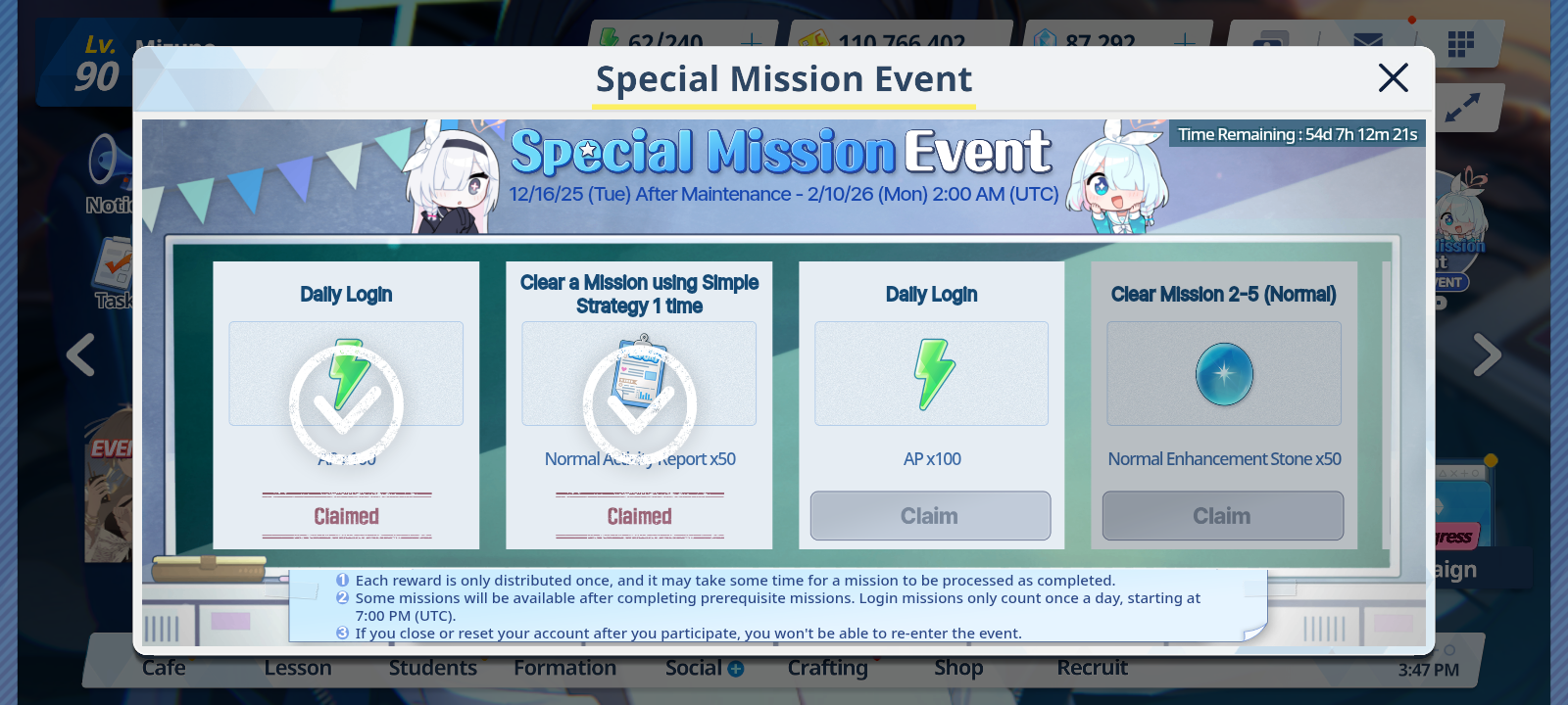 Previous Thread: >>550464495>Guides, Resources and useful links:https://rentry.org/bagguides>/bag/Circles/Clubs/Friends:https://rentry.org/holdingthebag>4koma, Manga, Side Content, PVs & Shortshttps://rentry.org/bacontent>>(JP) – JST>Banners:>12/17 11:00 – 12/24 10:59Meru, MomijiMinoriShigure (Hot Spring)Serika (Swimsuit)>News:Christmas Livestream: https://youtube.com/live/To4kTwOHslU – 12/20 19:005th Anniversary Website: https://5th-anniversary.bluearchive.jpPatch notes: https://bluearchive.jp/news/newsJump/609>Events:Balancing Schale's Books with the General Student Council – 12/17 11:00 – 12/24 10:59>Content:Limit Break Assault: Chokmah (Outdoor – w/Heavy Armor) – 11/20 11:00 – 12/24 3:592x Commission – 12/17 4:00 – 12/24 3:59>>(GLOBAL) – UTC>Banners:>12/16 After Maint – 12/23 1:59Hasumi (Swimsuit – Limited)Seia (Swimsuit – Limited)Ichika (Swimsuit – Welfare)>News:Patch notes: https://forum.nexon.com/bluearchive-en/board_view?thread=3302503Roadmap: https://bluearchive.nexon.com/events/2025/12/4th>Events:Summer Sky's Promise – 12/16 After Maint – 12/30 1:59100-Free Recruitment Event: https://forum.nexon.com/bluearchive-en/board_view?thread=3302497Teatime on the Beach: https://bluearchive.nexon.com/events/2025/12/teapartyMy Office: https://bluearchive.nexon.com/user/myofficeSpecial Survey: https://forms.gle/4DaM3bvLkqAkvX7q9>Content:Total Assault: Hod (Urban) – 12/23 2:00 – 12/29 18:59Limit Break Assault: Tiphareth (Indoor – w/Heavy Armor) – 12/17 2:00 – 1/12 18:593x Bounty/Lesson – 12/15 19:00 – 12/22 18:592x Account EXP – 12/19 19:00 – 12/21 18:593x Normal – 12/22 19:00 – 12/26 18:592x Account EXP – 12/26 19:00 – 12/28 18:59
