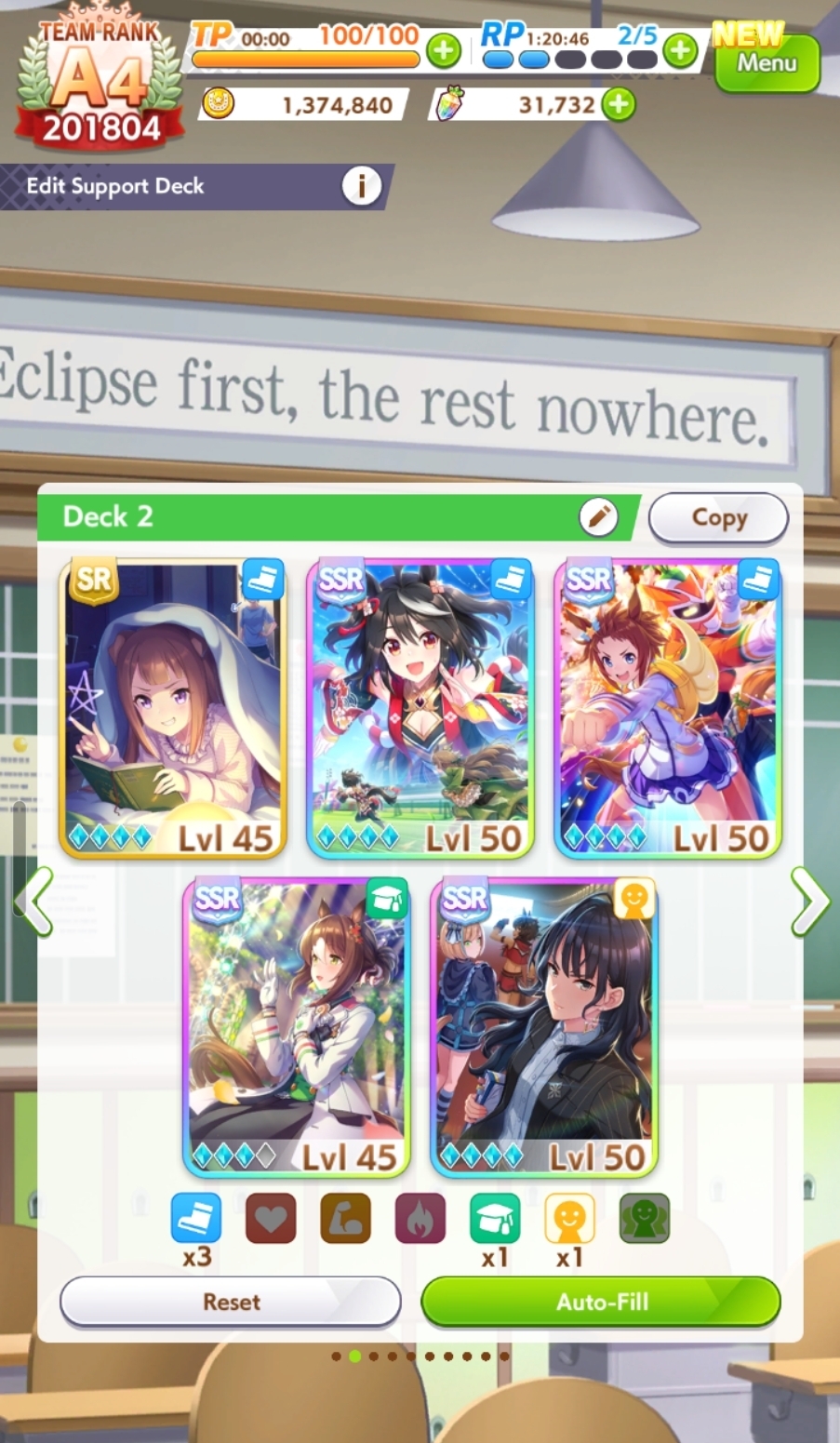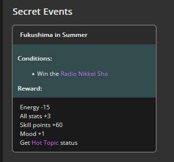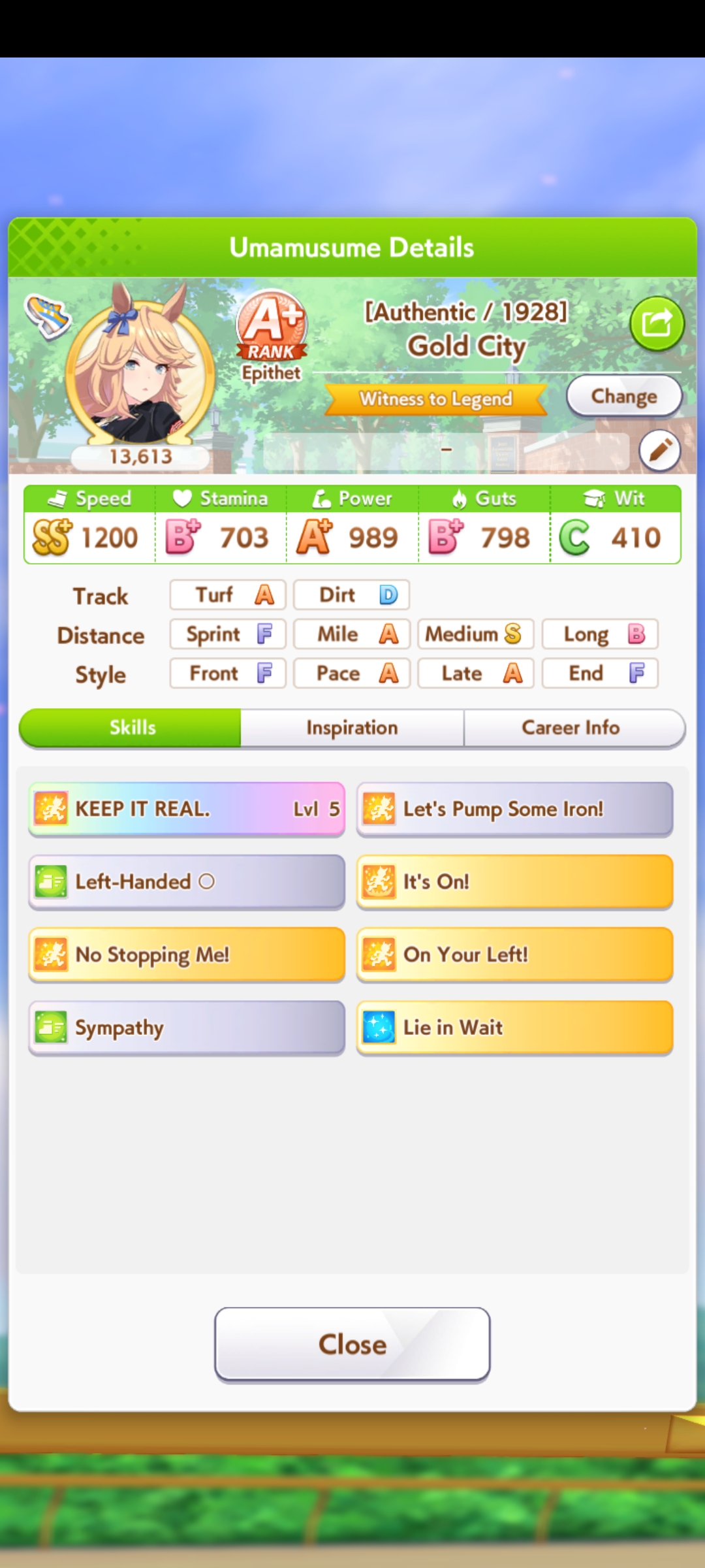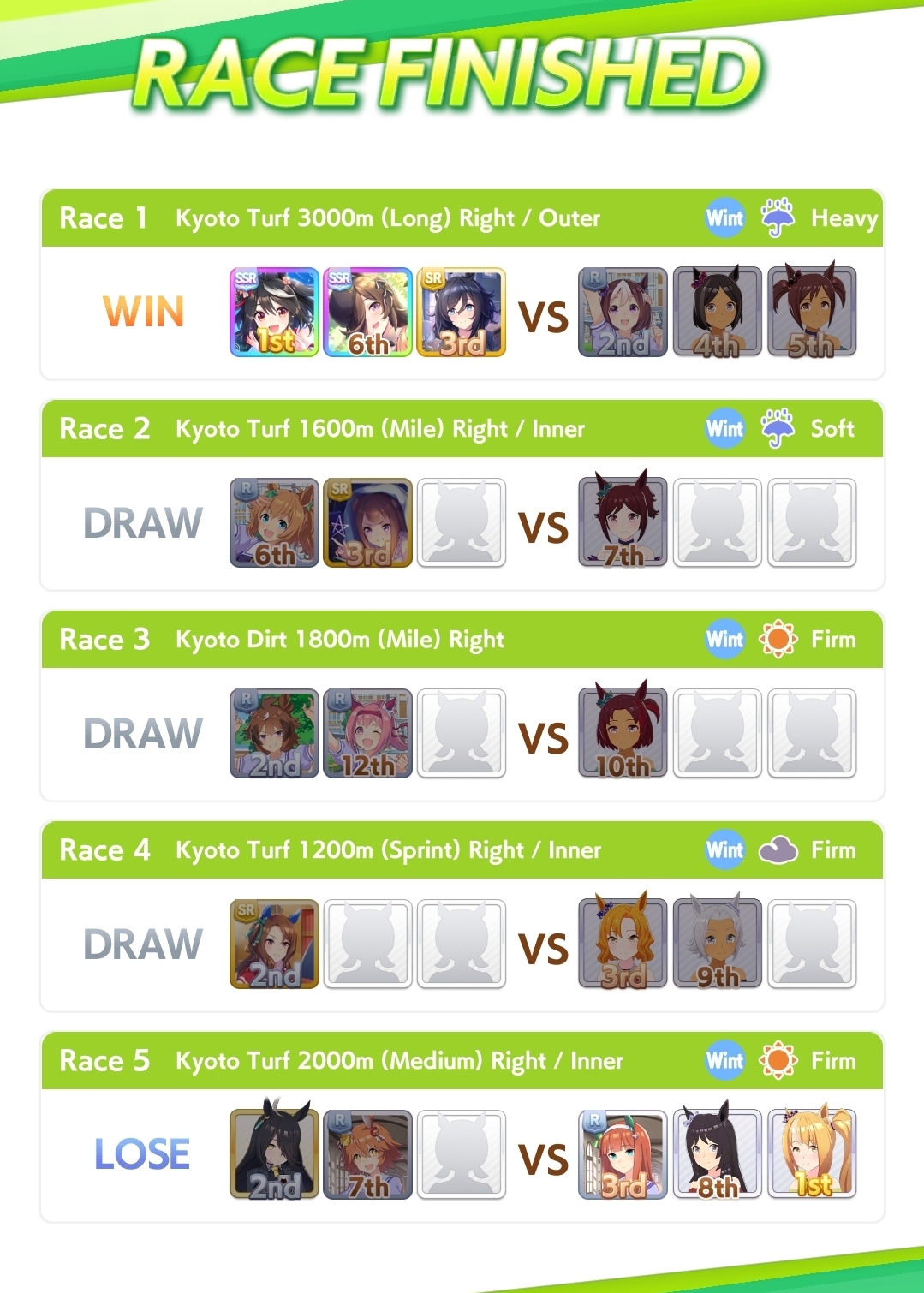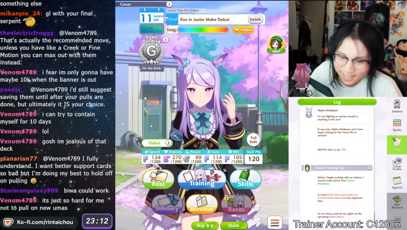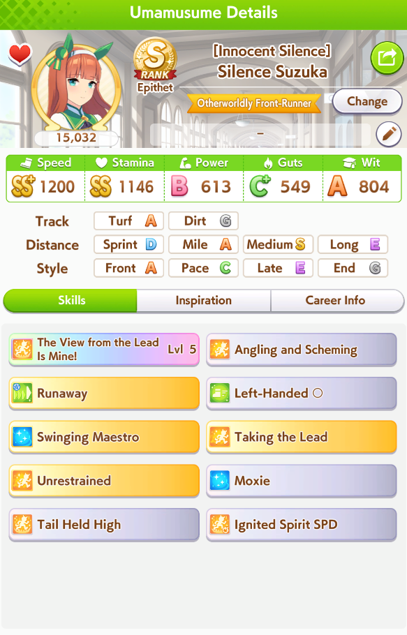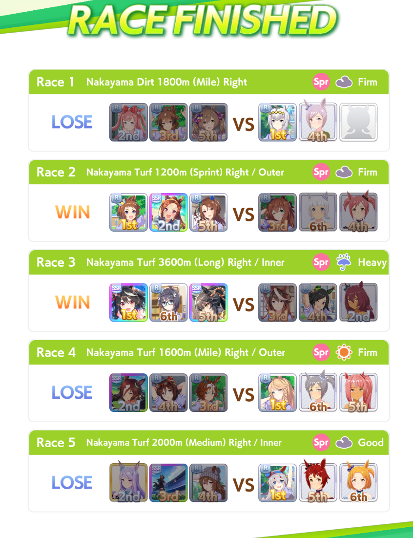 >>550517392I won against a 1200/1200/900 cafe with my own 1200/900/800 cafe. Other guy used a very similar ace I made that everyone stated was shit with no Accel skills, so they and I feel vindicated after remaking my Cafe Ace with some mod Accel skills