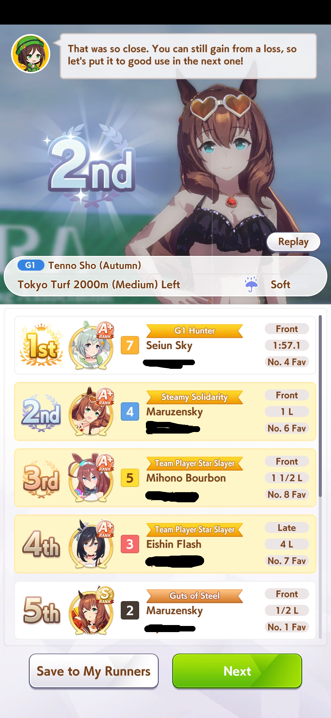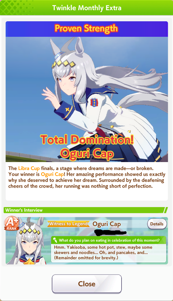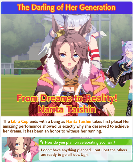 Potential uma,... I'm sorry for reluctantly running you, and even doubting you in the last 20 seconds of the race as I saw my fuku unable to trigger nsm completely.. and thank you for my first plat....