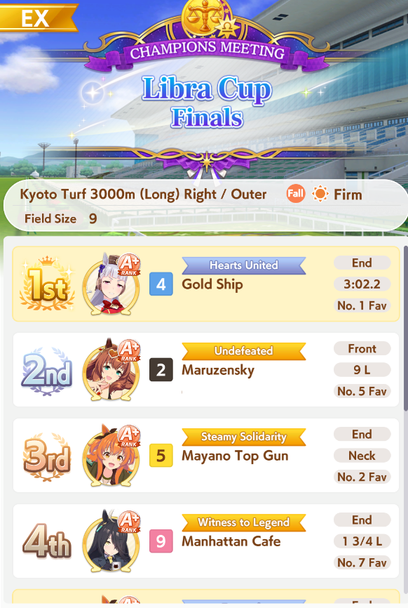 Previous: >>550474001>Global Game NewsLink your account to Cygames iDCurrent Scenario: Aoharu Hai aka "Unity Cup"Current CM: Libra Cup - Kyoto Turf 3000mCurrent Event: Orchestra in Late AutumnCurrent Rate Up Trainee: Symboli Rudolf 3* [Archer by Moonlight], Gold City 3* [Autumn Cosmos]Current Rate Up Support Cards: Curren Chan SSR [Cutie Pie With Shining Eyes], Narita Brian SSR [The Whistling Arrow's Taunt]12/18 - Kitasan Rerun12/24 - Fuji Event12/28 - Scorpio Cup - Tokyo Turf 2000mhttps://umamusume.com/news/100040/https://pages.snep.pw/uma/anni-skill-changes/>JP Game NewsCurrent Rate Up: Oguri Cap 3* [Cinderella Grey] Inari One (SSR)New Scenario "Yukoma Hot Spring" releasedTimeline: https://uma.moe/timelineCygames Webstore: https://webstore.cygames.com/en/umamusume_en/>IP NewsUmamusume Cinderella Gray 2nd season started weekly airings on 10/5>Thread Clubshttps://rentry.co/umaglobalclublistYou must be E3 (20k points) to join a circle. Apply with /uma/ or /vg/ in your profile or post ID in the thread.>All Guides & Resourceshttps://rentry.org/uma26Game databasehttps://gametora.com/umamusume (Click the gear to switch between JP / global server info)A basic guide for newfagshttps://rentry.org/umaglobalFind networks if your region is blocked from the game or clienthttps://www.umavpn.top/93Seiyuu & Concertshttps://rentry.org/umstUma storieshttps://umareader.idsmile.xyz/