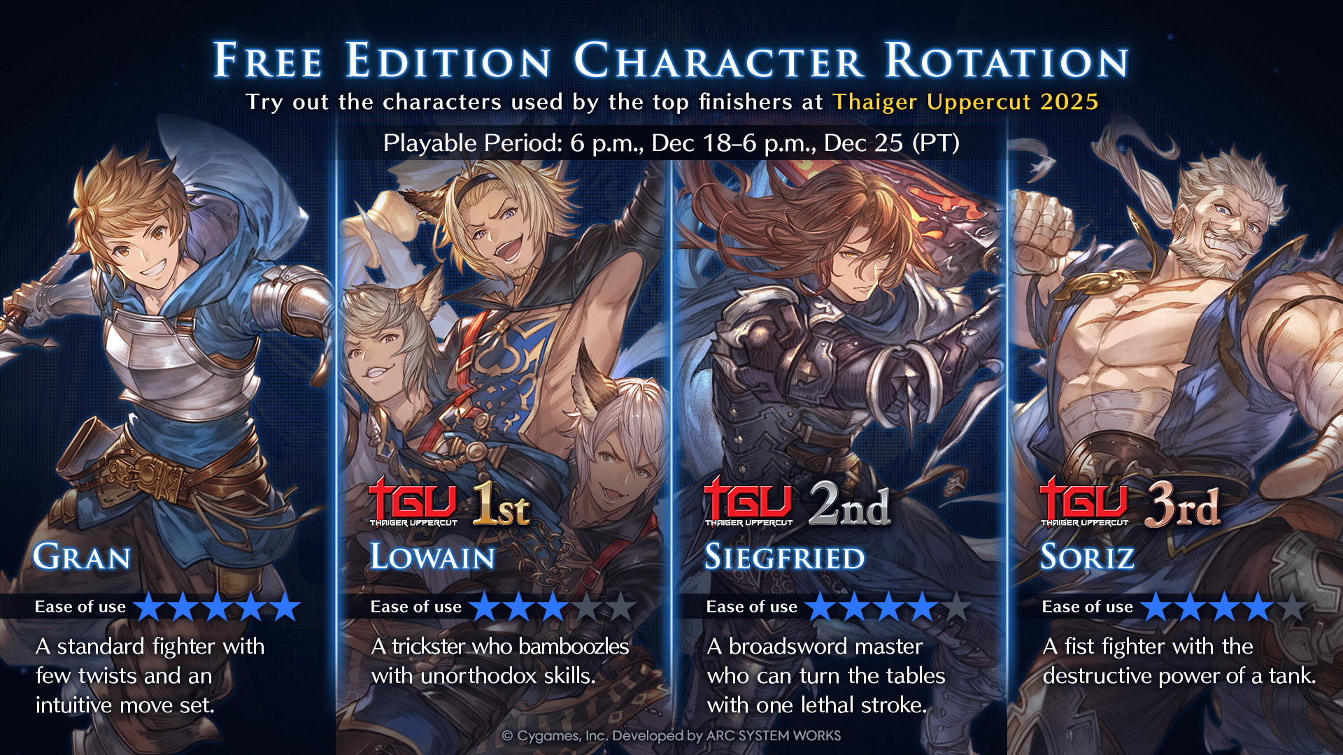 Patch notes:https://rising.granbluefantasy.jp/en/news/detail/?id=2-sw3wqtt>/gbvsg/ Tournament VODshttps://rentry.co/du3onotehttps://www.youtube.com/@grumblebumble69/--->(Un)official /gbvsg/ PC lobbyTo join, turn Crossplay off in System settings so that you're able to join Platform lobbies.Then you can join the (un)Official /gbvsg/ PC lobby at Japan Platform Lobby 1. Image version of joining instructions https://imgur.com/bCHqtDLPlaystation players cannot join the lobby, use a room if needed instead.>(un)Official /gbvsg/ RoomsUsually has "gbvsg" as password (check thread). f2players cannot join so ask people to join the lobby instead.>Gawdlike character guides (secret techniques!) for Yuel, Vikala, Narmaya, Galleon and Wilnas, by yours truly Anon!https://youtube.com/playlist?list=PLjG9OYMNRivtA_KWepE_aFmhGOJc2zETR&si=MqZagR-IO8ue8gxQ>This week's F2P rotationGran, Siegfried, Zeta and Grimnir.>Steam pagehttps://store.steampowered.com/app/2157560/Granblue_Fantasy_Versus_Rising/>Websitehttps://rising.granbluefantasy.jp/en/>Resources:https://www.dustloop.com/w/GBVSR>Twitter hashtagshttps://x.com/YamicornDMV/status/1709222479061745711>Match replayshttps://replaytheater.app/?game=gbvs>Graphic Enhancements for PChttps://steamcommunity.com/sharedfiles/filedetails/?id=3117157142>Enable sound while the game runs in the backgroundhttps://steamcommunity.com/app/2157560/discussions/0/4041481833167877002/>Remove Figure Mode censorship/black voidhttps://gamebanana.com/mods/484409Previous Bread: >>550358323