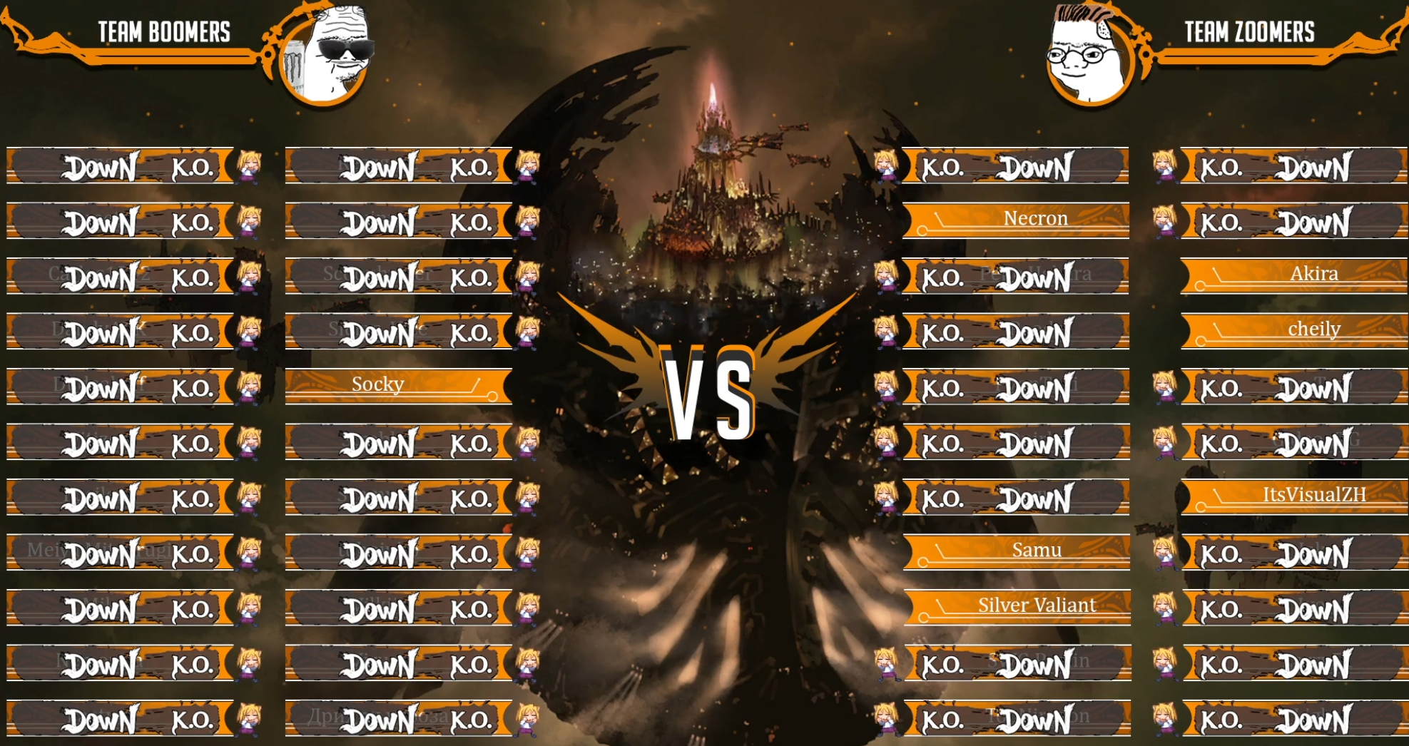 >>550501152It looks decent, but it actually plays much better than it looks.>>550501374The game works on stock HP, you deplete the regular HP bar until a certain point and then you can deplete stocks, then after you depleted them once the HP bar refills. There are some more nuances but I won't go into it here. Usually it takes 3 full HP bar depletions until you win the match and deplete opponent's stocks. Yhwach's pretty balanced in that he is quite strong but needs a lot, a lot of meter before he unlocks his Almighty. Once you unlock it though he gets to nullify ONE attack on your stocks thanks to the excuse of seeing the future. So the opponent would need to hit and deplete his HP bar 4 times instead of the usual 3 for example. So basically imagine you get hit by an SSBA that is about to kill you, but in the middle of it your character literally teleports behind them and resets to neutral and the game continues. Of course that's not the only thing he gets, but that's the biggest positive.