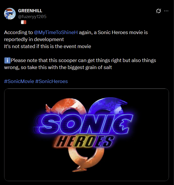 >>550595391>I want movie Sonic to do a proper dance with a score board showing his rankMe too. Seeing some of the Rush animations on the big screen would be fantastic. I hope they branch out from just the SA2 stuff, hopefully getting that out of their system to focus on the lesser known gems. Thats an ideal though and its a miracle we even have a passable set of movies from Hollywood, they usually treat game IPs much fucking worse.
