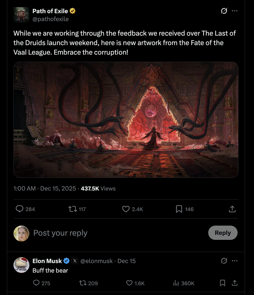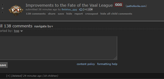 Lmao someone did the "rue is a cat" thing as the first reply to the announcement and GGG removed it. You can't delete your own posts, so it had to have been them