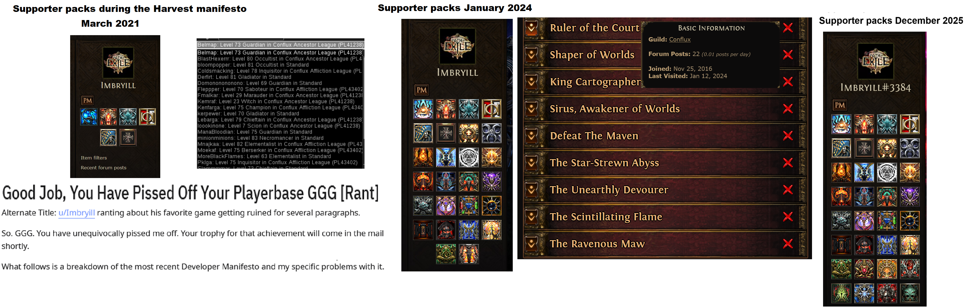 >>550523221When 3.15 dropped we swore a sacred oath. There have been ups and downs. BFR was removed. PoE 2 sucks ass. Now not many of us are left, but we will see this through.