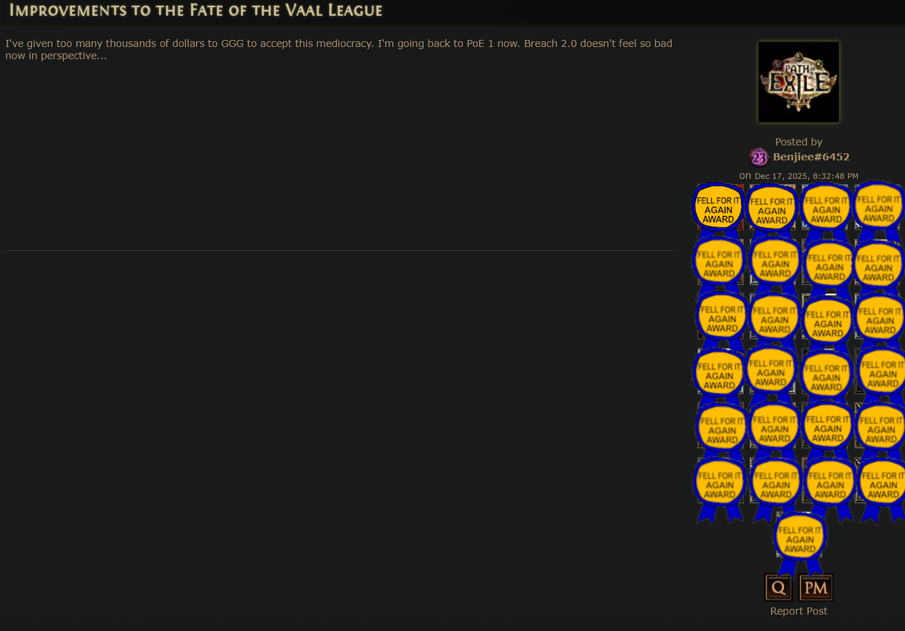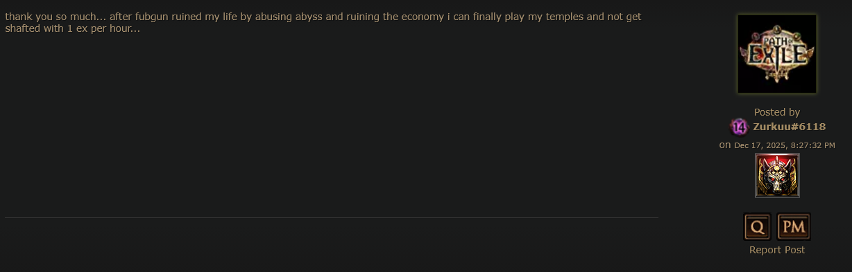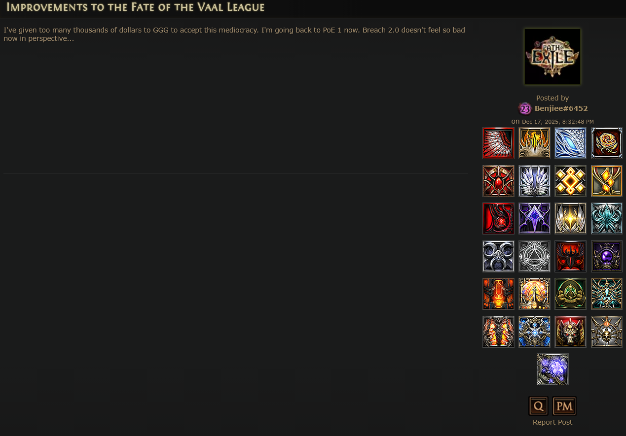 poe1 dads are rioting already they're making anti phrecia posts, they know that ggg enabling it for private leagues will kill their dogshit game