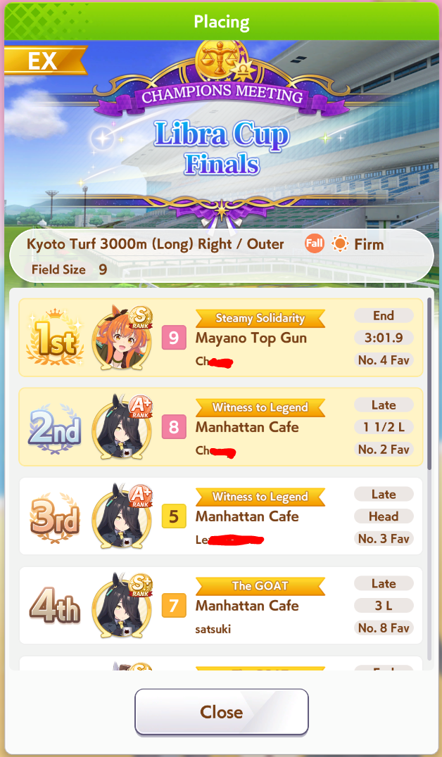 Considering that I didn't think I was even getting into A finals to begin with this time the fact that I made it in and got second is a blessing.Also glad I didn't get third place, I was about to turn into Nice Nature since that would have been the third CM in a row