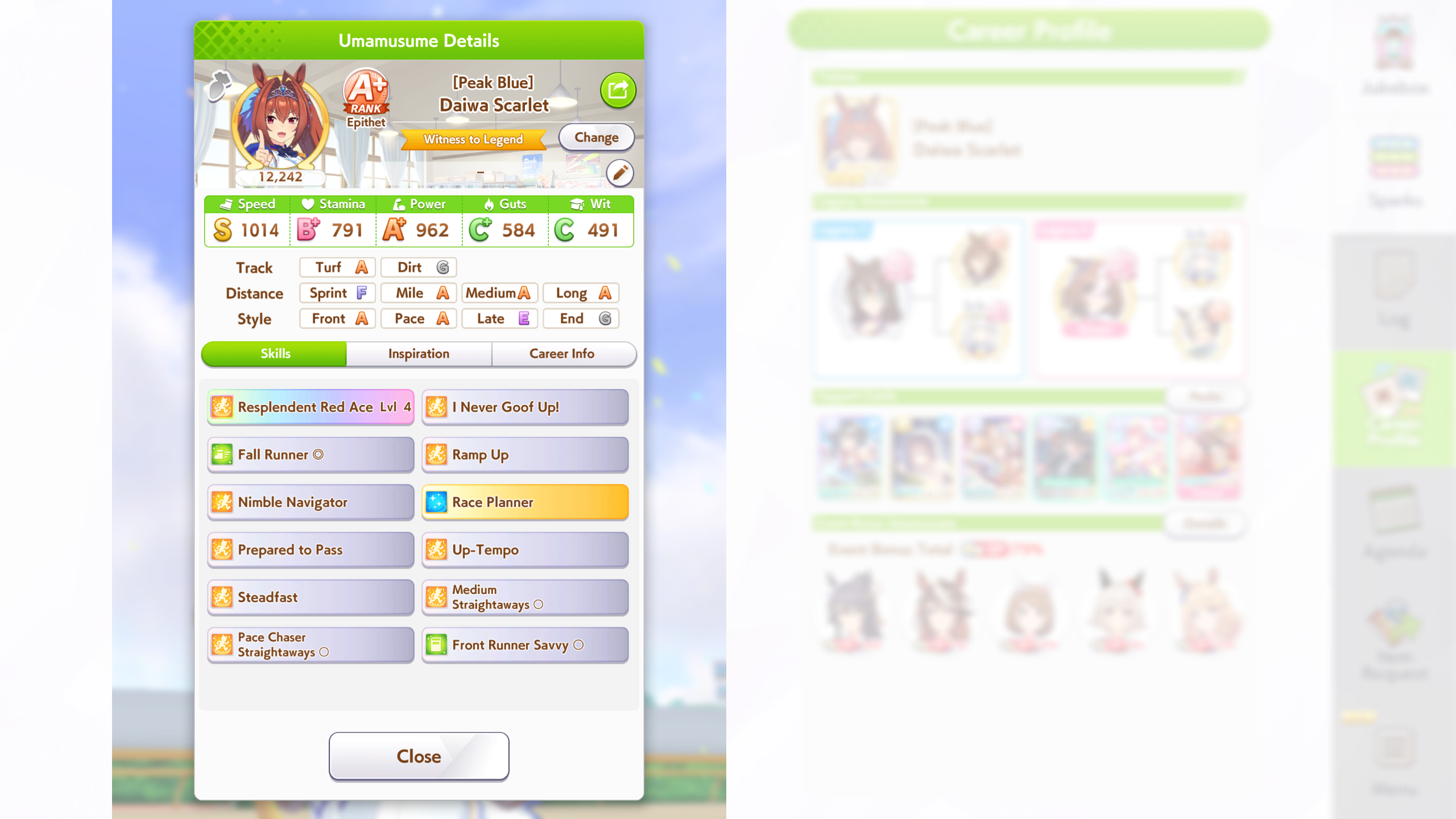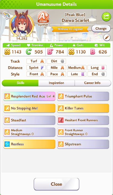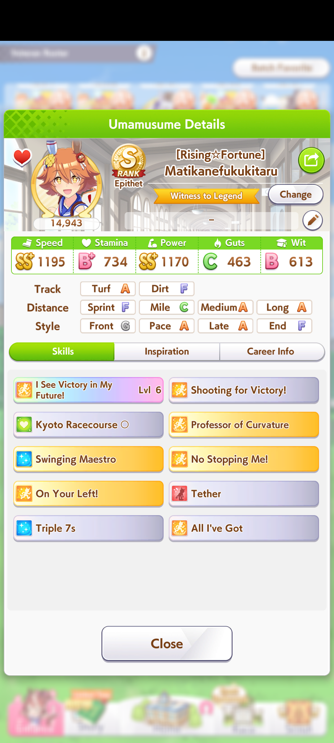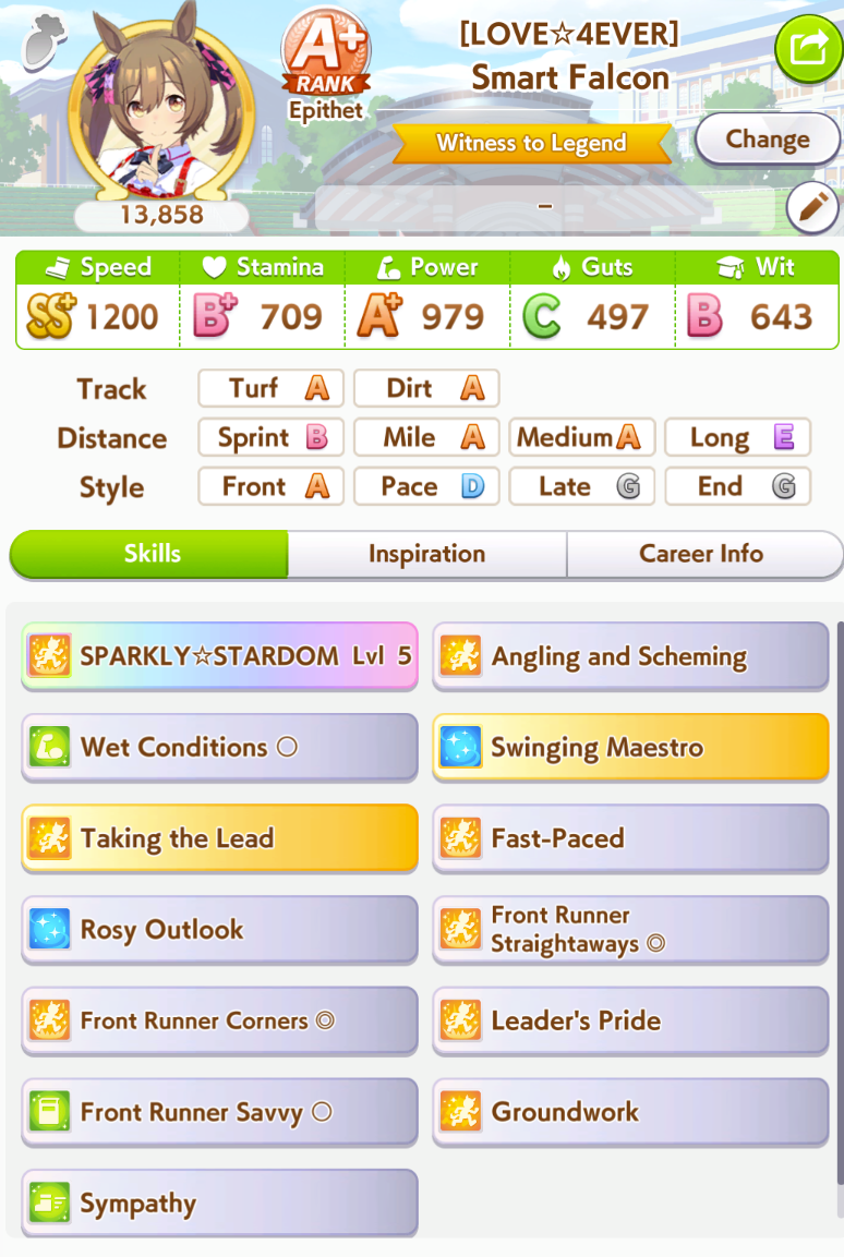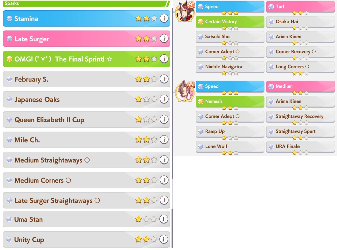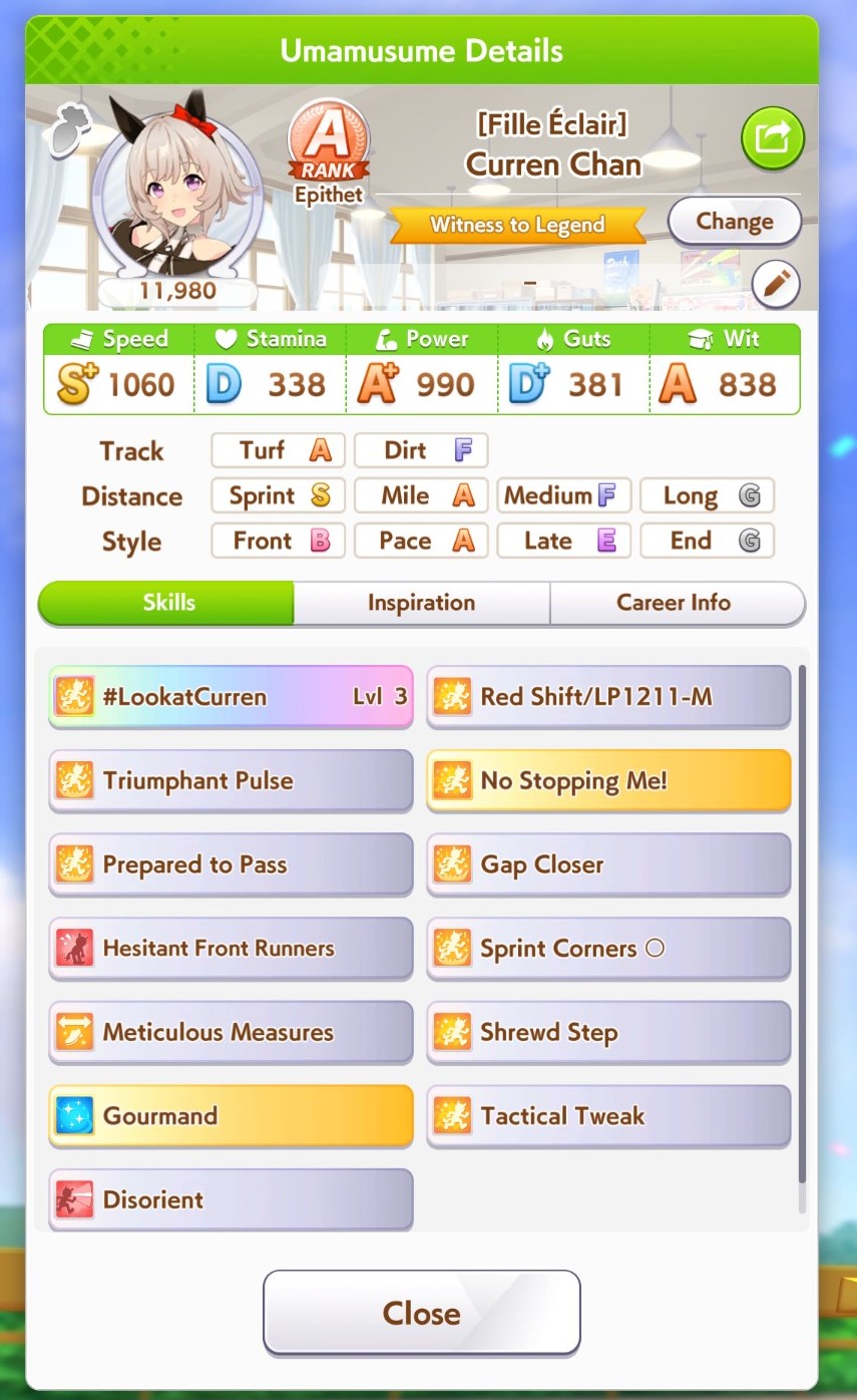 >>550542182I just remembered she gets either the rainy or wet green from career. Her epithet requires winning on of her races in the rain and if you win you get the green.
