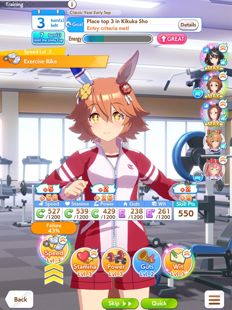 >>550558971>great mood requirementI hate this shit. absolutely nothing you can do to prevent a mood drop the turn before the race.