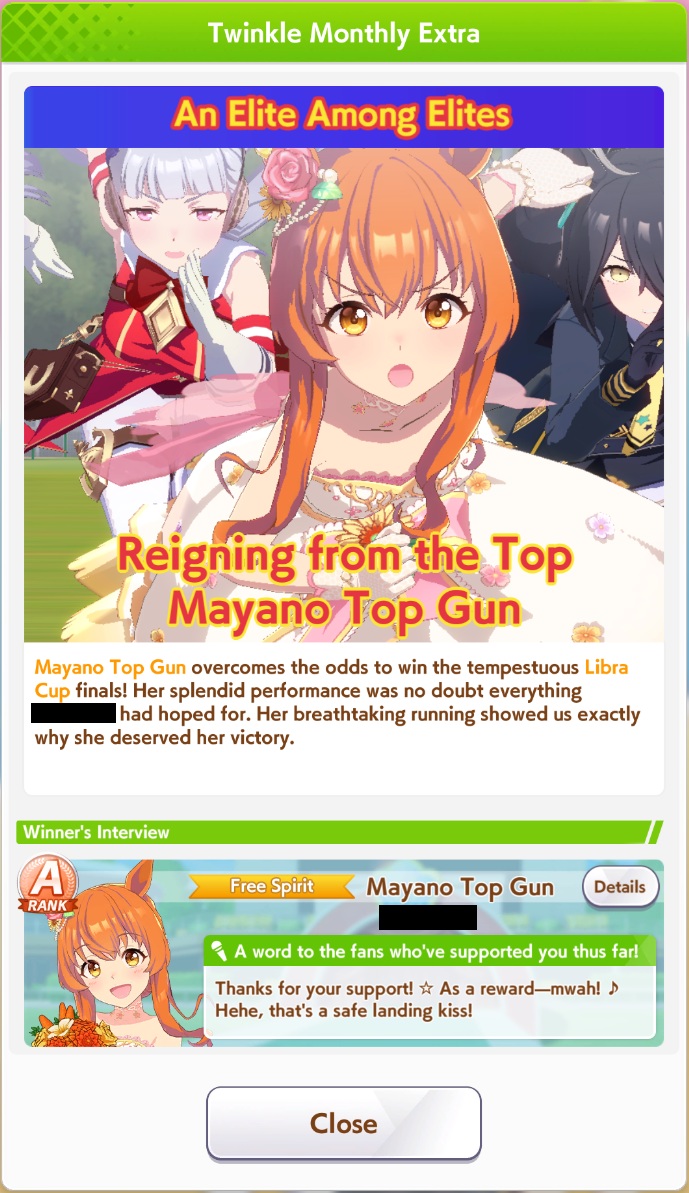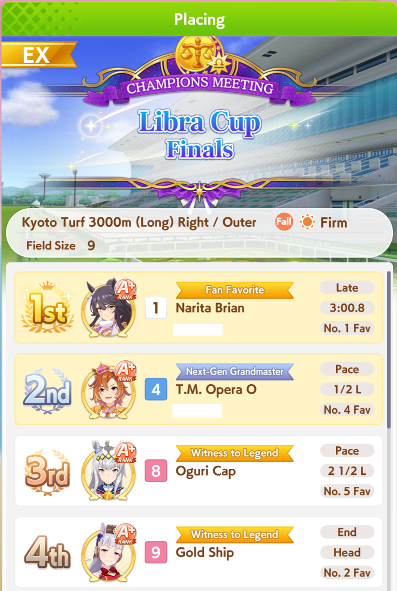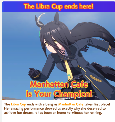 Previous: >>550526818>Global Game NewsLink your account to Cygames iDCurrent Scenario: Aoharu Hai aka "Unity Cup"Current Event: Orchestra in Late AutumnCurrent Rate Up Trainee: Symboli Rudolf 3* [Archer by Moonlight], Gold City 3* [Autumn Cosmos]Current Rate Up Support Cards: Curren Chan SSR [Cutie Pie With Shining Eyes], Narita Brian SSR [The Whistling Arrow's Taunt]12/18 - Kitasan Rerun12/24 - Fuji Event12/28 - Scorpio Cup - Tokyo Turf 2000mhttps://umamusume.com/news/100040/https://pages.snep.pw/uma/anni-skill-changes/>JP Game NewsCurrent Rate Up: Oguri Cap 3* [Cinderella Grey] Inari One (SSR)New Scenario "Yukoma Hot Spring" releasedTimeline: https://uma.moe/timelineCygames Webstore: https://webstore.cygames.com/en/umamusume_en/>IP NewsUmamusume Cinderella Gray 2nd season started weekly airings on 10/5>Thread Clubshttps://rentry.co/umaglobalclublistYou must be E3 (20k points) to join a circle. Apply with /uma/ or /vg/ in your profile or post ID in the thread.>All Guides & Resourceshttps://rentry.org/uma26Game databasehttps://gametora.com/umamusume (Click the gear to switch between JP / global server info)A basic guide for newfagshttps://rentry.org/umaglobalFind networks if your region is blocked from the game or clienthttps://www.umavpn.top/93Seiyuu & Concertshttps://rentry.org/umstUma storieshttps://umareader.idsmile.xyz/