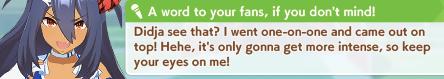saw an image and felt like rewatching some Uma S2, I'd forgotten how lightning fucking paced this shit is sometimesin the span of like 9 real time minutes, Teio and McQueen go from lezzing out to not being on speaking terms (off-screen), Teio gets injured and recovers, gets into AND out of a funk, Bourbon both announces she will become an undefeated triple crown AND loses, there's a Palmer arc thrown in there, Nice Nature collects another bronze AND Teio's toreina has to whore himself to pay his bar tabAll of this happens between the last 2 minutes of episode 5 and the first 7 minutes of episode 6