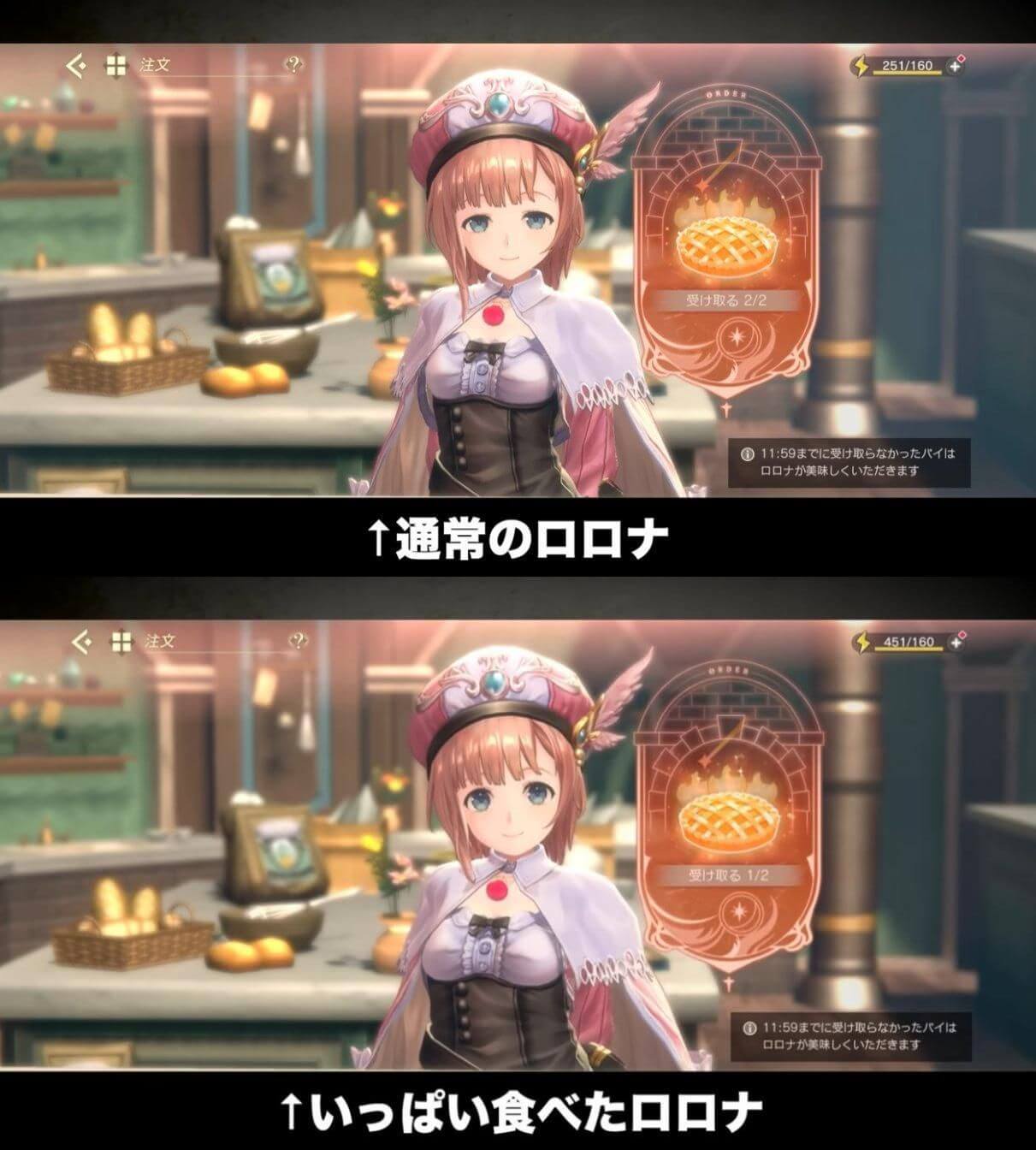>>550745729It was to encourage you to sign in daily. The items you received each day to recharge your energy (points you spend to play the game) were pies that she baked. She made 1 in the morning and 1 in the evening every day. If you didn’t log in she’d eat both pies, and she’d tell you she would. Obviously eating two pies a day fattens her up quick, so she got chubby if you didn’t eat her pies.