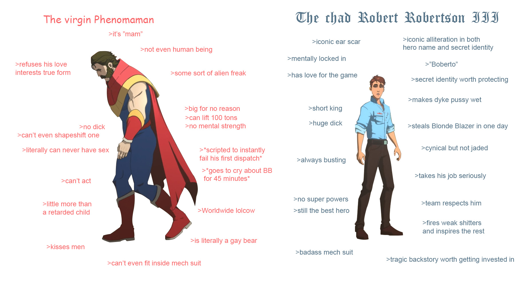 >>550673641they're both dumb autists who act as a foil to one another, but waterboy actually tries and gives a shit about being a hero so he mogs by the game's true-hero-centric spirit