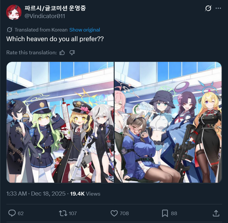 Previous Thread: >>550569859>Guides, Resources and useful links:https://rentry.org/bagguides>/bag/Circles/Clubs/Friends:https://rentry.org/holdingthebag>4koma, Manga, Side Content, PVs & Shortshttps://rentry.org/bacontent>>(JP) – JST>Banners:>12/17 11:00 – 12/24 10:59Meru, MomijiMinoriShigure (Hot Spring)Serika (Swimsuit)>News:Christmas Livestream: https://youtube.com/live/To4kTwOHslU – 12/20 19:005th Anniversary Website: https://5th-anniversary.bluearchive.jpPatch notes: https://bluearchive.jp/news/newsJump/609>Events:Balancing Schale's Books with the General Student Council – 12/17 11:00 – 12/24 10:59>Content:Limit Break Assault: Chokmah (Outdoor – w/Heavy Armor) – 11/20 11:00 – 12/24 3:592x Commission – 12/17 4:00 – 12/24 3:59>>(GLOBAL) – UTC>Banners:>12/16 After Maint – 12/23 1:59Hasumi (Swimsuit – Limited)Seia (Swimsuit – Limited)Ichika (Swimsuit – Welfare)>News:Patch notes: https://forum.nexon.com/bluearchive-en/board_view?thread=3302503Roadmap: https://bluearchive.nexon.com/events/2025/12/4th>Events:Summer Sky's Promise – 12/16 After Maint – 12/30 1:59100-Free Recruitment Event: https://forum.nexon.com/bluearchive-en/board_view?thread=3302497Teatime on the Beach: https://bluearchive.nexon.com/events/2025/12/teapartyMy Office: https://bluearchive.nexon.com/user/myofficeSpecial Survey: https://forms.gle/4DaM3bvLkqAkvX7q9>Content:Total Assault: Hod (Urban) – 12/23 2:00 – 12/29 18:59Limit Break Assault: Tiphareth (Indoor – w/Heavy Armor) – 12/17 2:00 – 1/12 18:593x Bounty/Lesson – 12/15 19:00 – 12/22 18:592x Account EXP – 12/19 19:00 – 12/21 18:593x Normal – 12/22 19:00 – 12/26 18:592x Account EXP – 12/26 19:00 – 12/28 18:59
