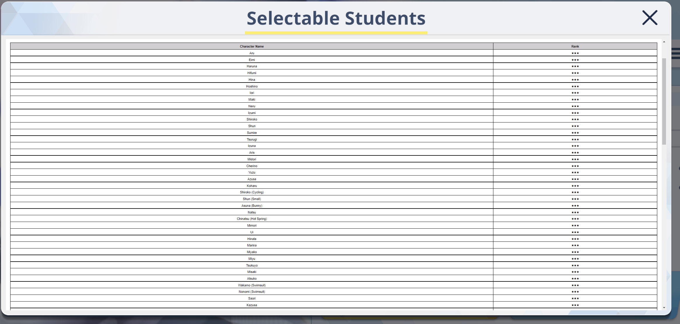i'm level 89 with level 80 students (max, leveled on a per-content basis)i'm a bit lost on how exactly to proceed with properly improving my students, any advice is appreciatedi'm not sure if spending reports on getting to level 89, or even 85 is super worth it since idk how to quantify the stat numbersfor students that get deployed a lot i've got t4 equipment but could get them to t5 or higher if i grind up more matsi'm always a little poor in terms of skill growth mats but i try to level skills where relevant (and have recently been following the bricc archive spreadsheet)pretty much all used students are at least 3* but i've been getting more to 4* and upit tends to depend on what students i have in the unit, but i tend to struggle at clearing extreme raids with one team even when borrowingi only really run into level 90s in pvp and lose more often than not, just started doing final restriction releases and not sure what my avg. max floor is yettl;dr i get dumpstered at extreme raids when trying for one team clears, generally not enough dps, doubt i can clear insaneyell at me to post bag planner (currently updating it)
