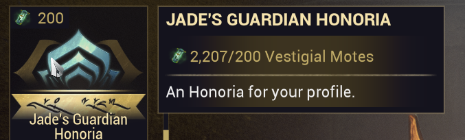>check honoria>see I have 2k fucking vestigal motes>secondary fortifier rank 5 is 210 motes and sells for 75 plat easyI wonder on how many other piles of money I'm sleeping on