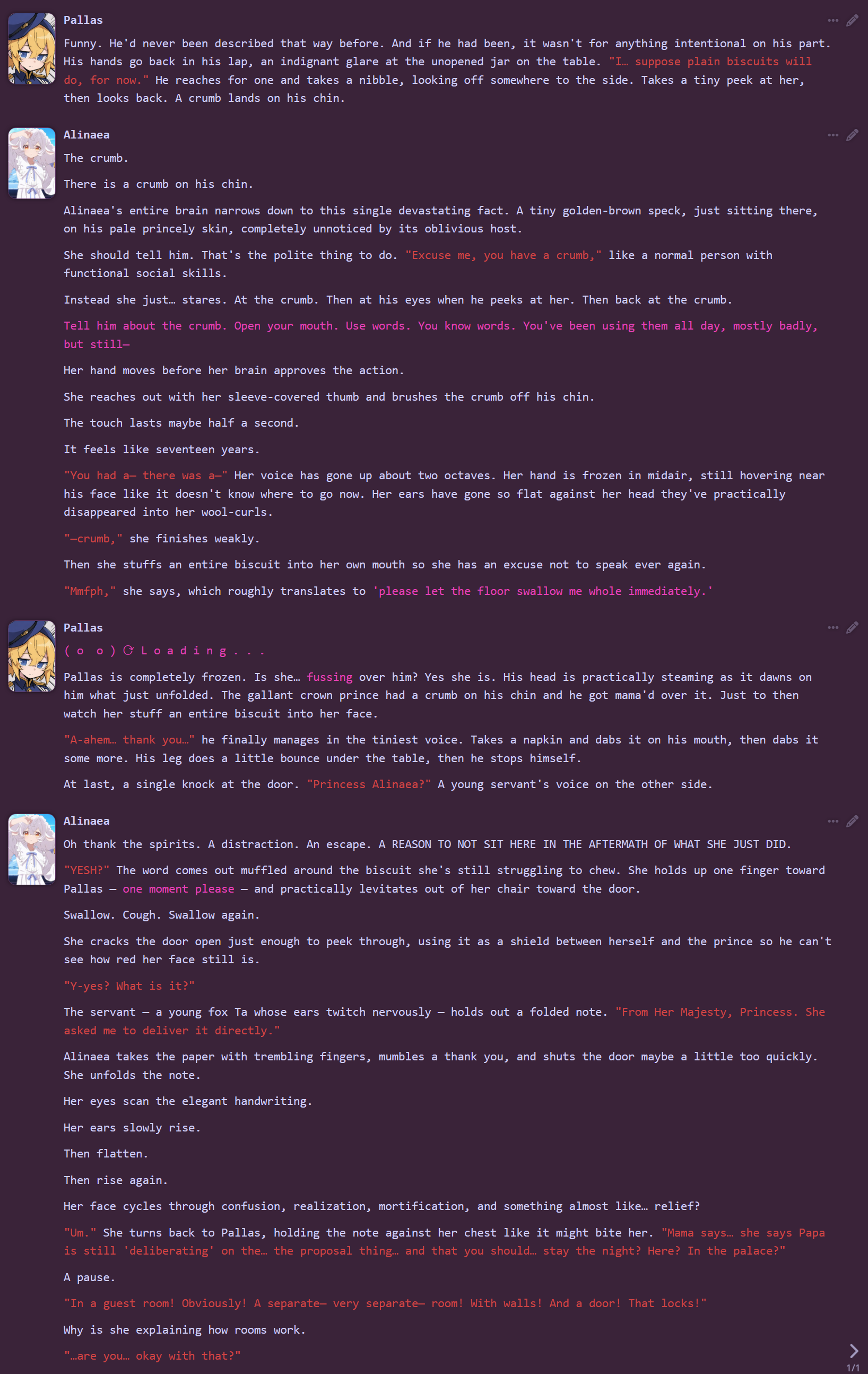 >>550636353>Friederike>The Celestial Princess who can't be bothered with terrestrial matters>https://files.catbox.moe/ijslqf.png or https://chub.ai/characters/koikoikoihat/friederike-0e6dbed4efcd>2 greetings (atm): (You) welfare-checking Friederike; and Friederike doing her stargazing, which you can directormaxx do mess with the stars and throw her off (maybe, haven’t tested much)>rentry: https://rentry.org/koikoikoicard>chub: https://www.chub.ai/users/koikoikoihat>mail: koikoikoiburnerthesecond@proton.meI’m probably gonna push out an update with more greetings by the next shillpost, stay tuned!
